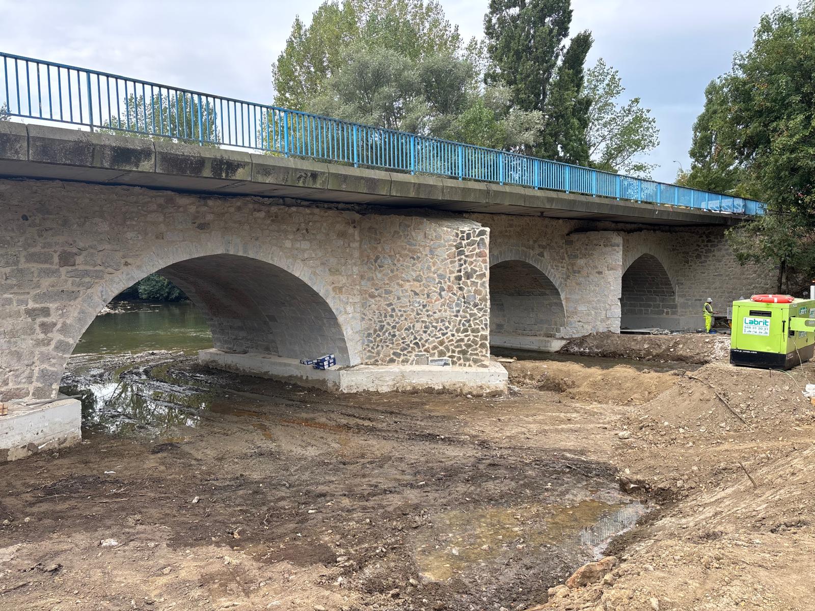 Para la mejora de la infraestructura se han construido ataguías para desviar el cauce fluvial y permitir trabajar en seco sobre las cimentaciones, que han sido reforzadas con hormigón armado. En paralelo, se ha llevado a cabo la limpieza de la estructura.
