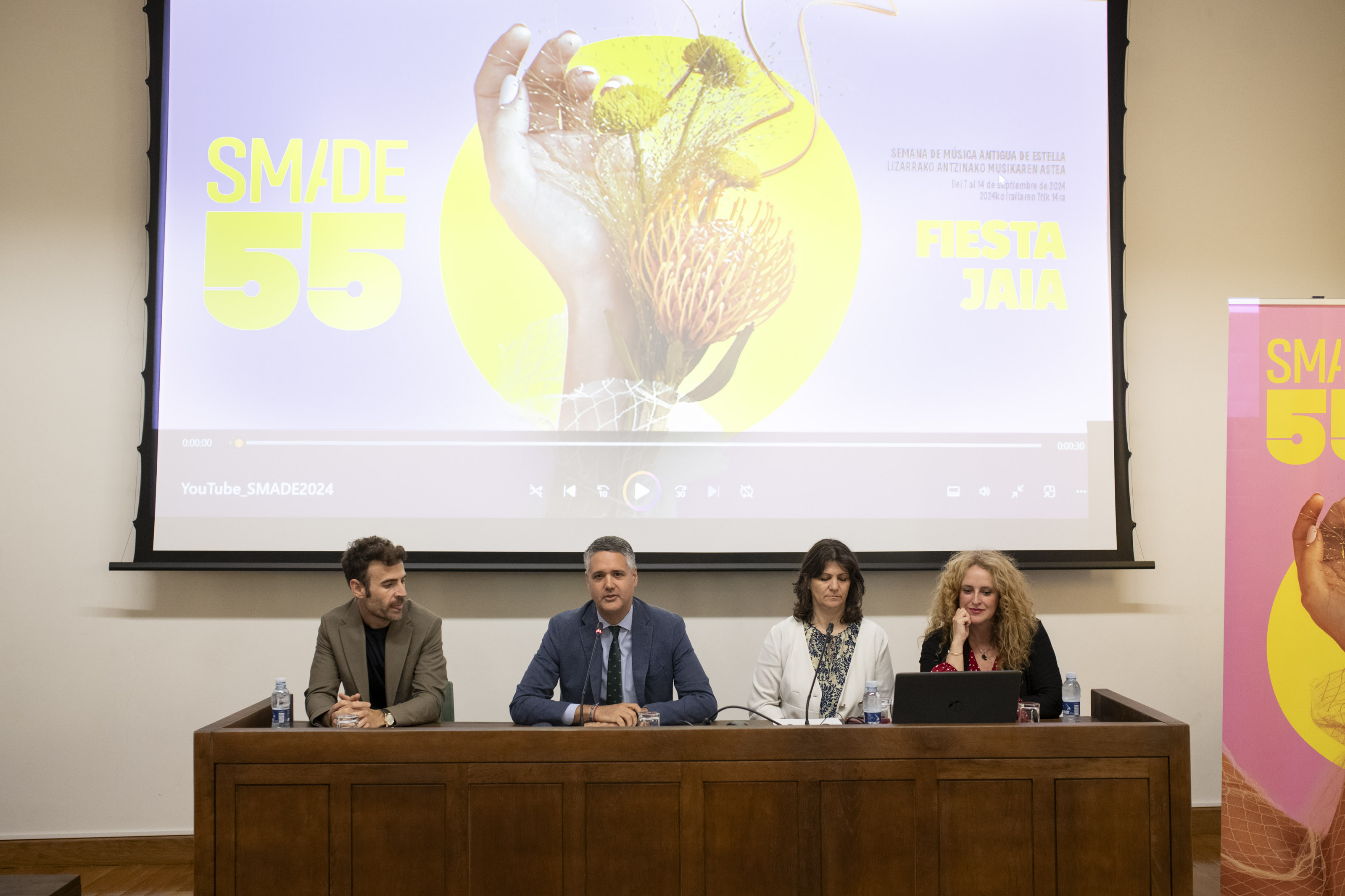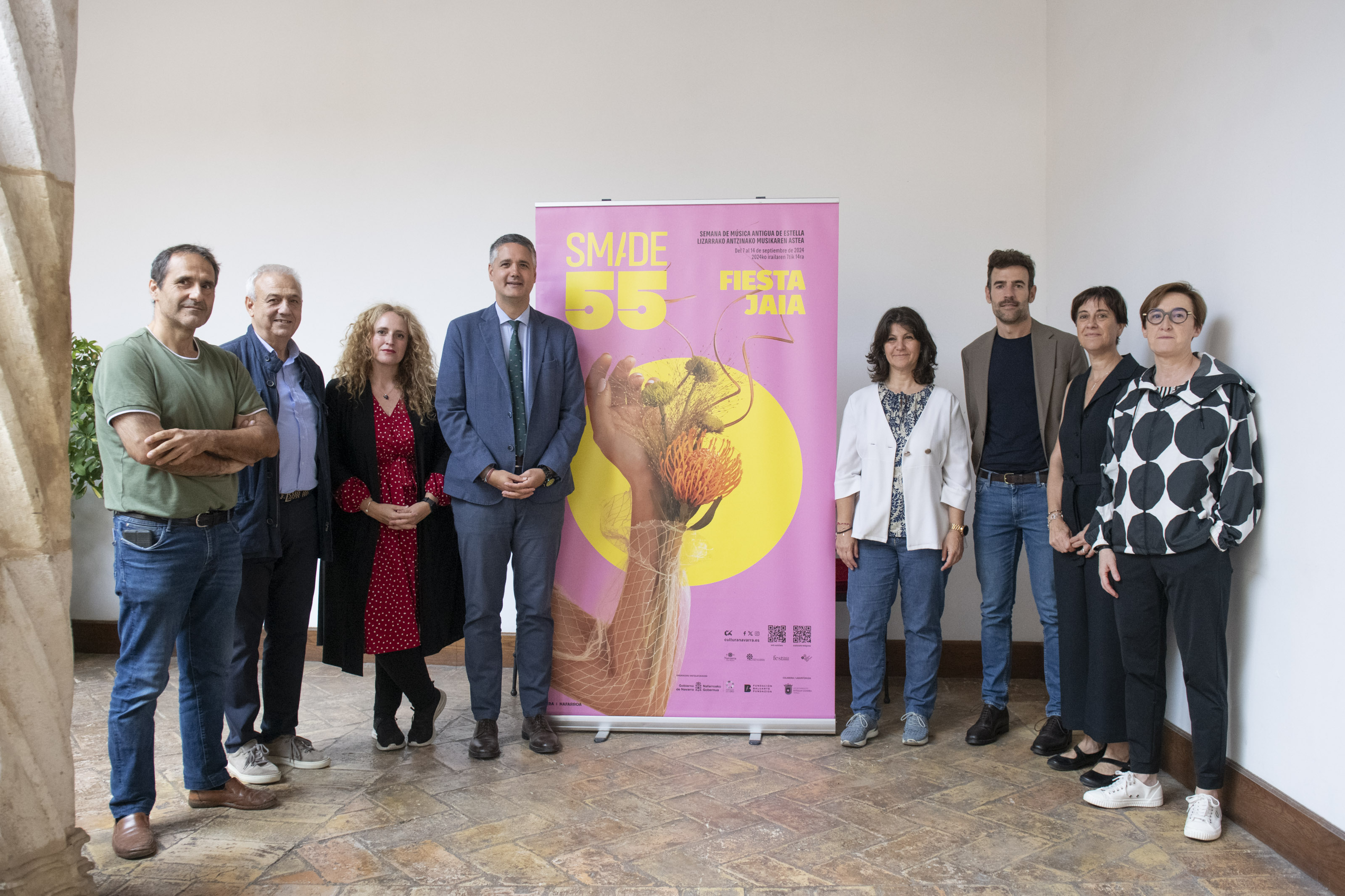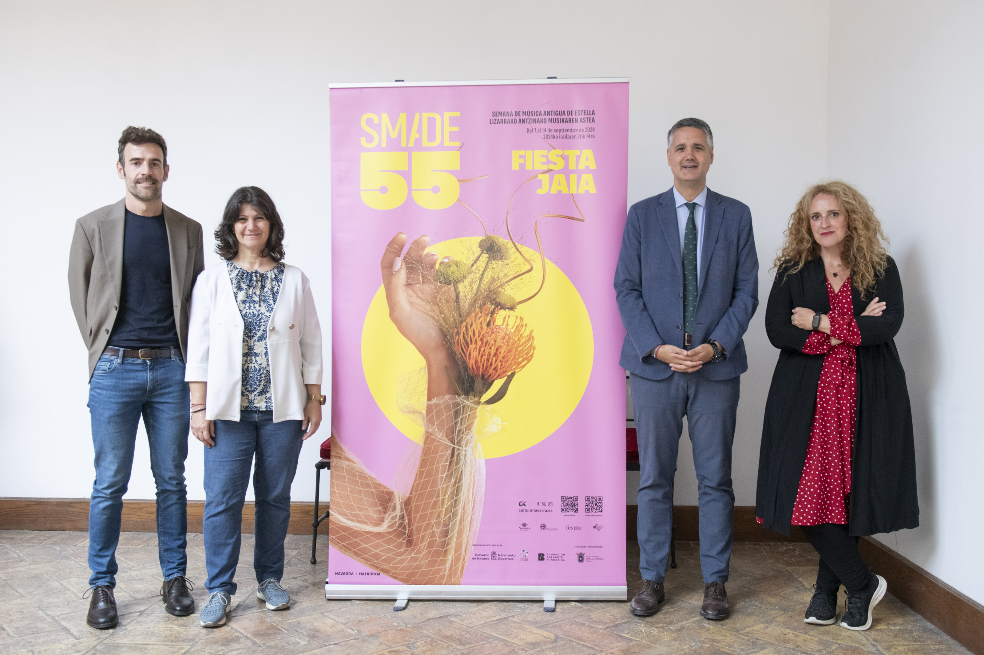 La Semana de Música Antigua de Estella (SMADE) conmemora sus 55 años de andadura con música, baile y poesía en una nueva edición que, bajo el título ‘Fiesta / Jaia’, se celebrará entre los días 7 y 14 de septiembre y que se ha presentado esta mañana en la Casa de Cultura Fray Diego de Estella-Lizarra. En el acto han intervenido el Director General de Cultura de la Comunidad Foral de Navarra, Ignacio Apezteguía; el director gerente de Fundación Baluarte, Rubén Jauquicoa; la concejala del Ayuntamiento de Estella-Lizarra, Ana Duarte, y la directora artística del festival, Raquel Andueza.