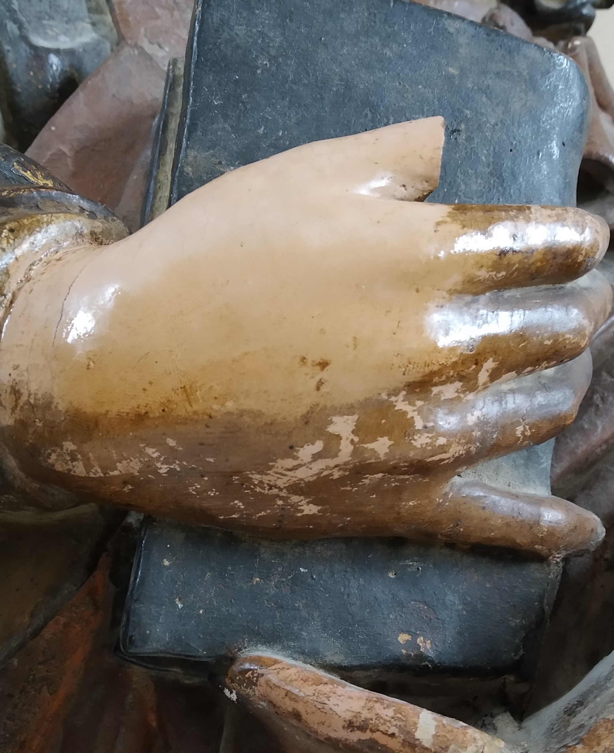 Detalle de la mano del San Juan del Retablo de la Veracruz de la Iglesia de
