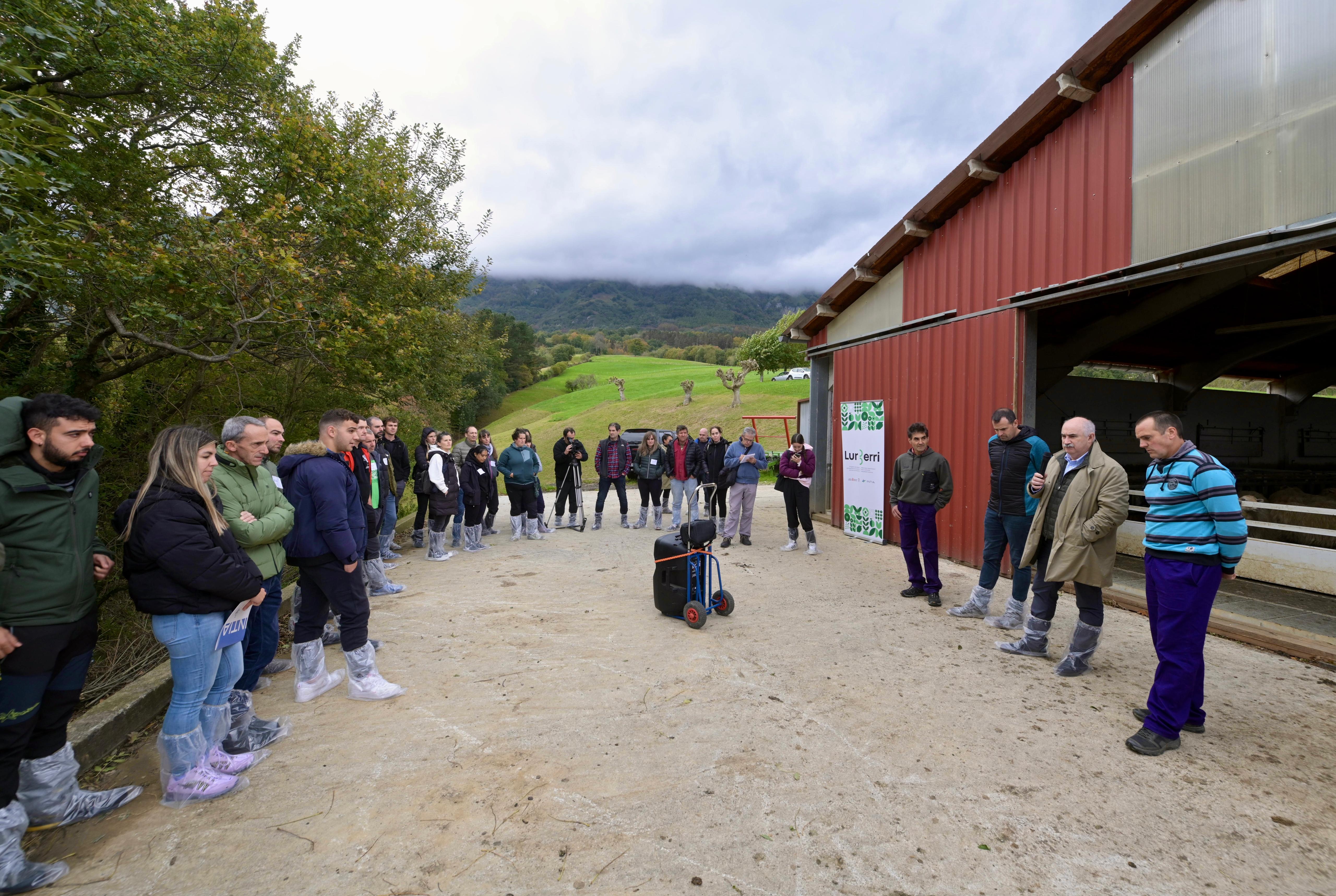Los y las jóvenes han podido acercarse de primera mano a la experiencia de estos dos ganaderos que acaban de protagonizar un relevo generacional en la granja de Gaintza, así como han conocido también el servicio de intermediación que les ofrece la Dirección General de Desarrollo Rural a través de la sociedad pública INTIA y que facilita estos traspasos.