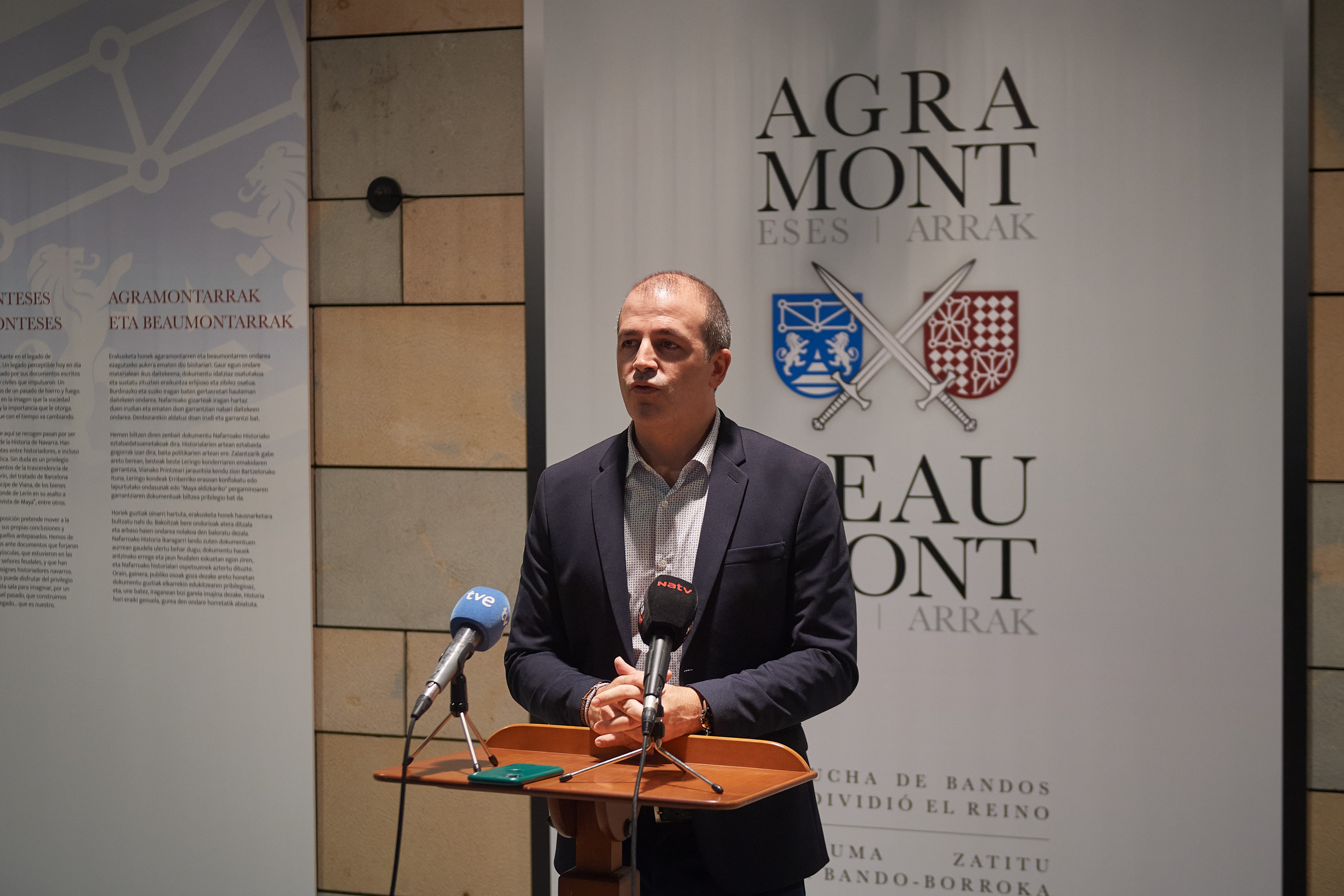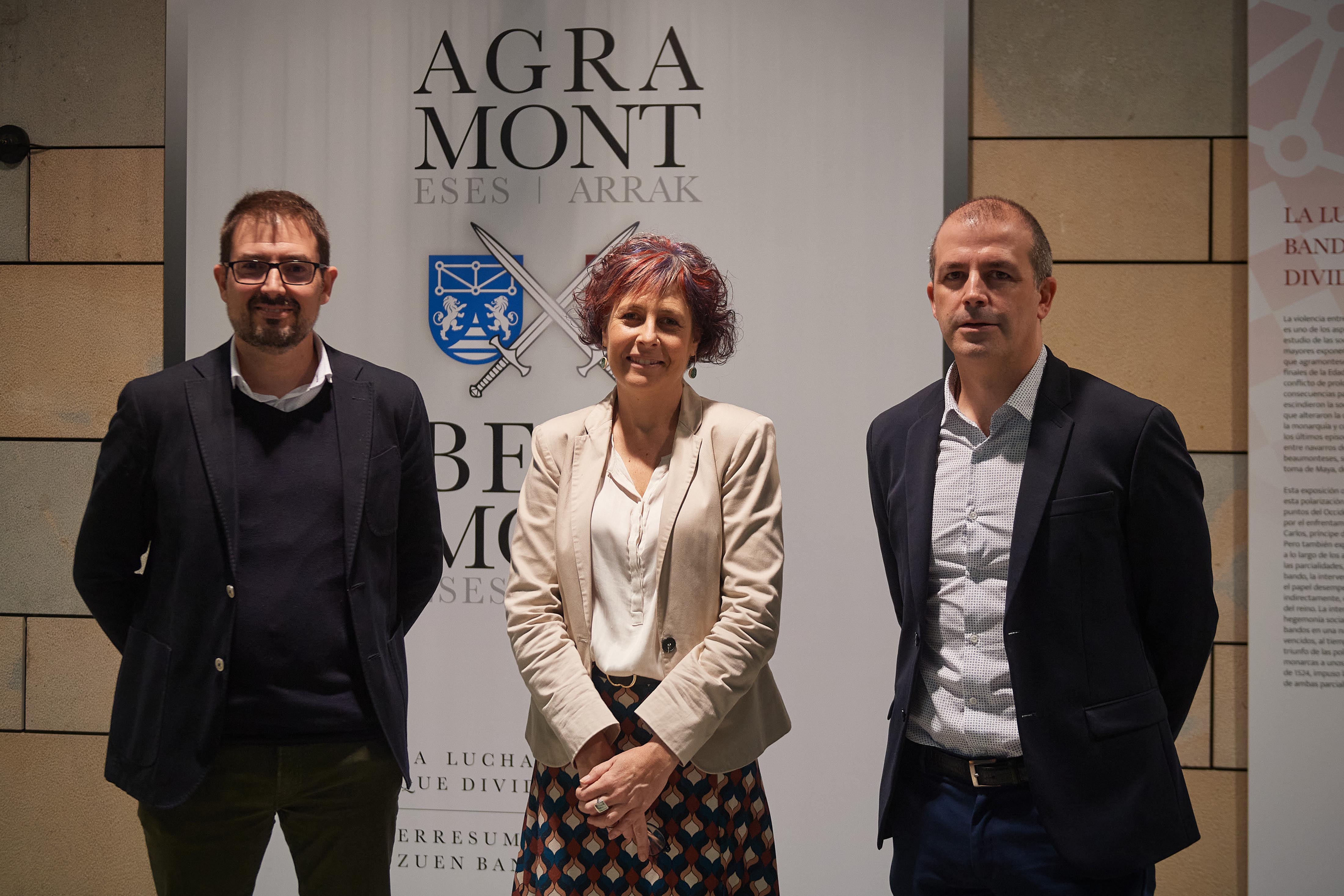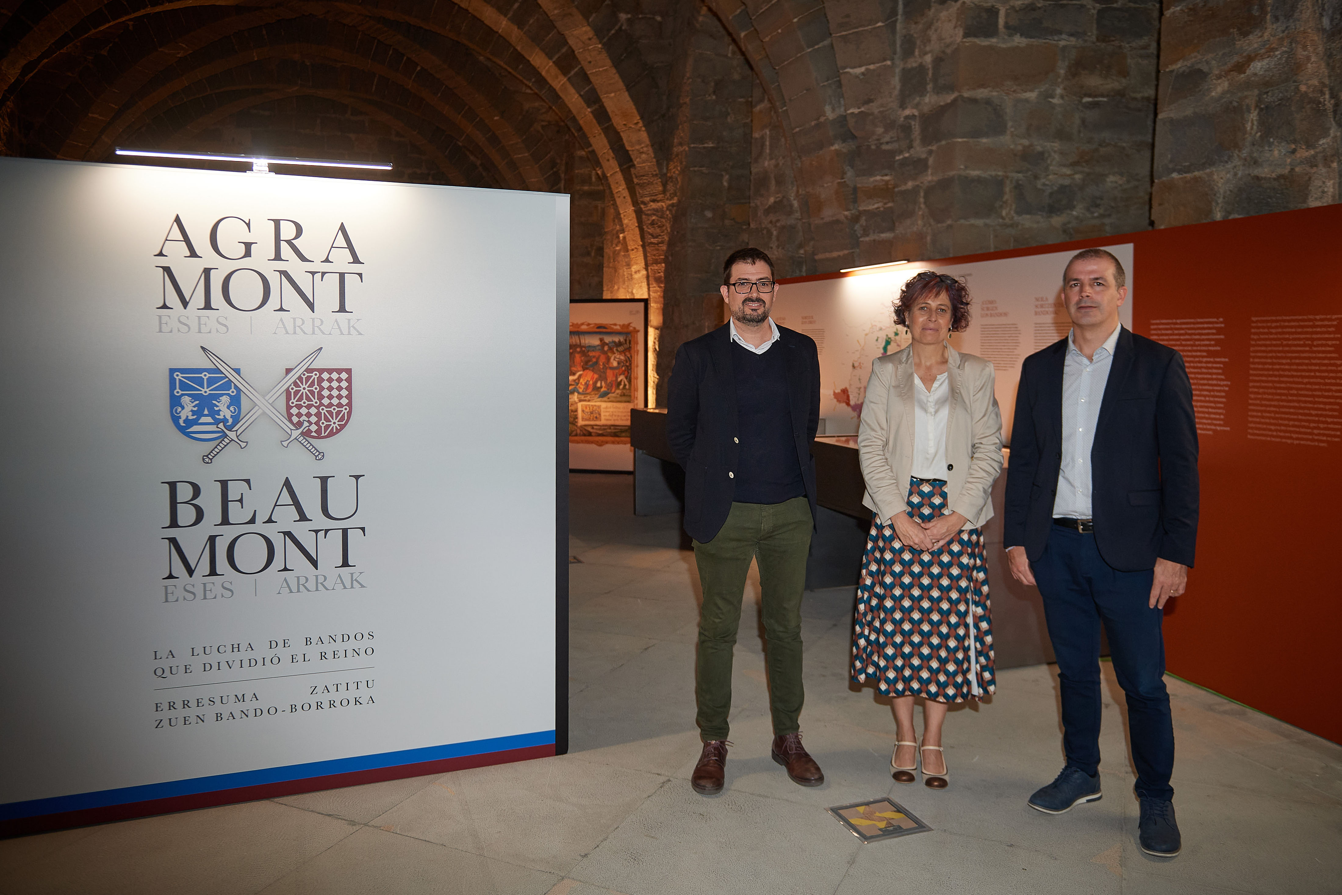 La consejera de Cultura y Deporte del Gobierno de Navarra, Rebeca Esnaola, ha inaugurado hoy miércoles 26 de octubre la exposición “Agramonteses y Beaumonteses. La lucha de bandos que dividió el reino”. La muestra ha sido comisariada por Íñigo Mugueta Moreno, profesor titular de Historia Medieval de la Universidad Pública de Navarra. En el acto también ha participado Félix Segura Urra, director del Archivo Real y General de Navarra.