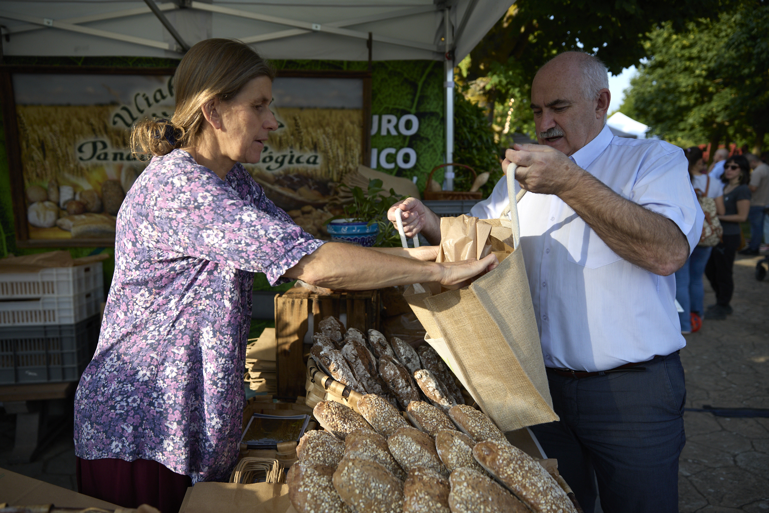 En su recorrido por los puestos de aceites, quesos, vinos, frutas y verduras, conservas, miel o mermeladas, entre otros productos, estuvo acompañado por Mª José Arrondo, presidenta del Consejo de la Producción Ecológica Agraria de Navarra (CPAEN/NNPEK), entidad que inspira y organiza el evento. La venta directa y el contacto con los productores a través de 40 puestos es uno de los principales atractivos de la Feria, ubicada en el Parque de los Sentidos de Noáin (Valle de Elorz).