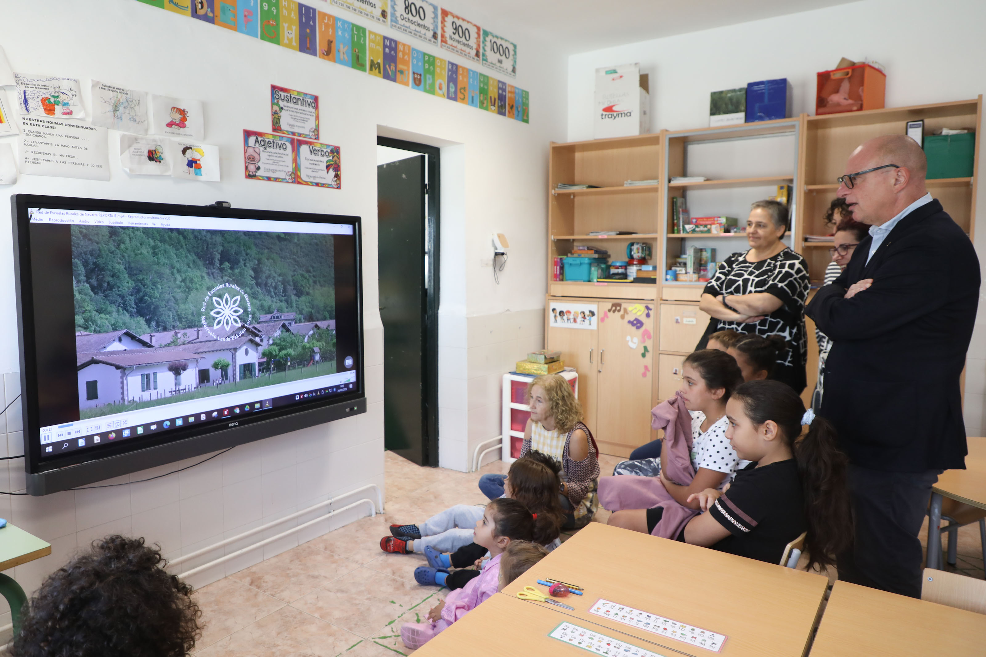 Durante la visita se ha presentado un video corporativo elaborado por la red de escuelas rurales de Navarra, en el que ha participado la comunidad educativa de estos centros, repartidos por áreas de Baztan; Malerreka; Leitzaldea; Bortziriak; Roncal / Erronkari; Salazar / Zaraitzu, Auñamendi, Barranca / Sakana, Sangüesa - Izaga; zona de Tafalla, valle del Aragón, Tierra Estella y Ribera, con 280 grupos en etapas que van desde el segundo ciclo de Educación Infantil y Educación Primaria hasta la ESO.
