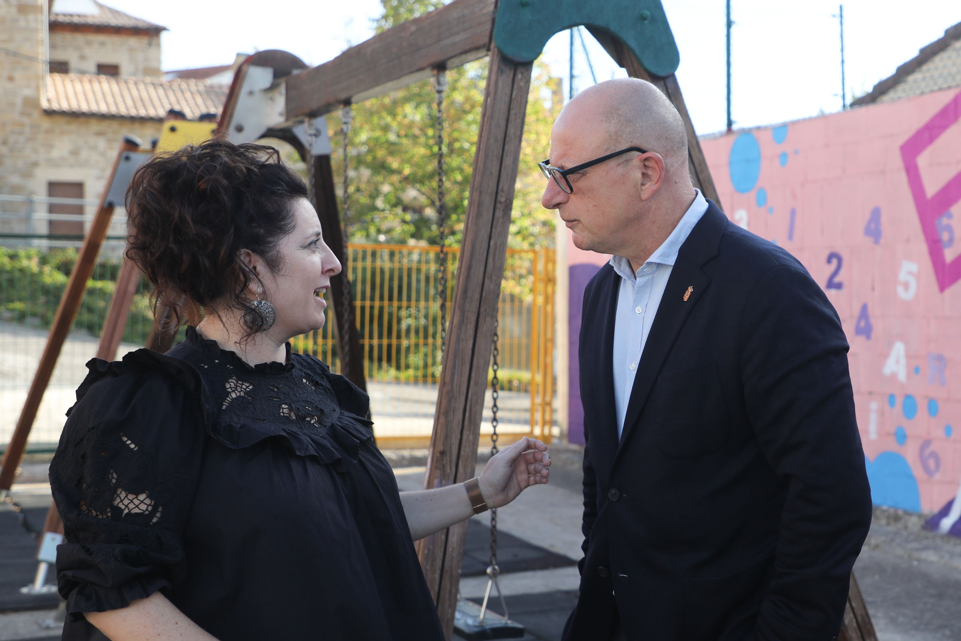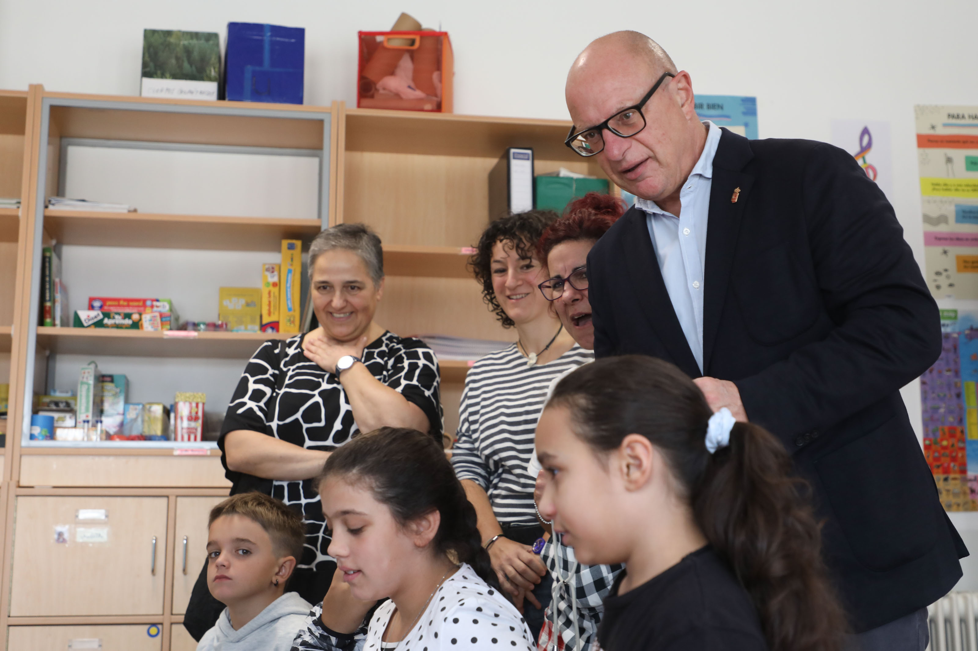Gimeno y Salaverri han comprobado el funcionamiento de esta escuela rural, en la que en este curso 2022-2023 están matriculados 8 estudiantes de cursos diferentes, desde 3 años en Educación Infantil a 4º de Primaria. El colegio cuenta con siete docentes y consta de tres espacios: un aula grande, un aula pequeña y un espacio multiusos para uso del profesorado.