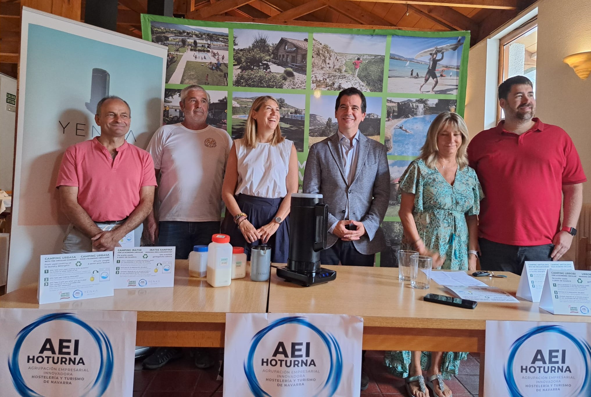 La Asociación de Campings de Navarra, la AEI-HOTURNA (Agrupación Empresarial Innovadora de Hostelería y Turismo de Navarra) y ‘Almotech’ se han unido para facilitar la transformación de aceite usado en jabón biodegradable líquido para lavadora. Esta colaboración no solo reduce el impacto ambiental, sino que también recompensa a las y los clientes de los campings, fomentando su concienciación y fidelización.