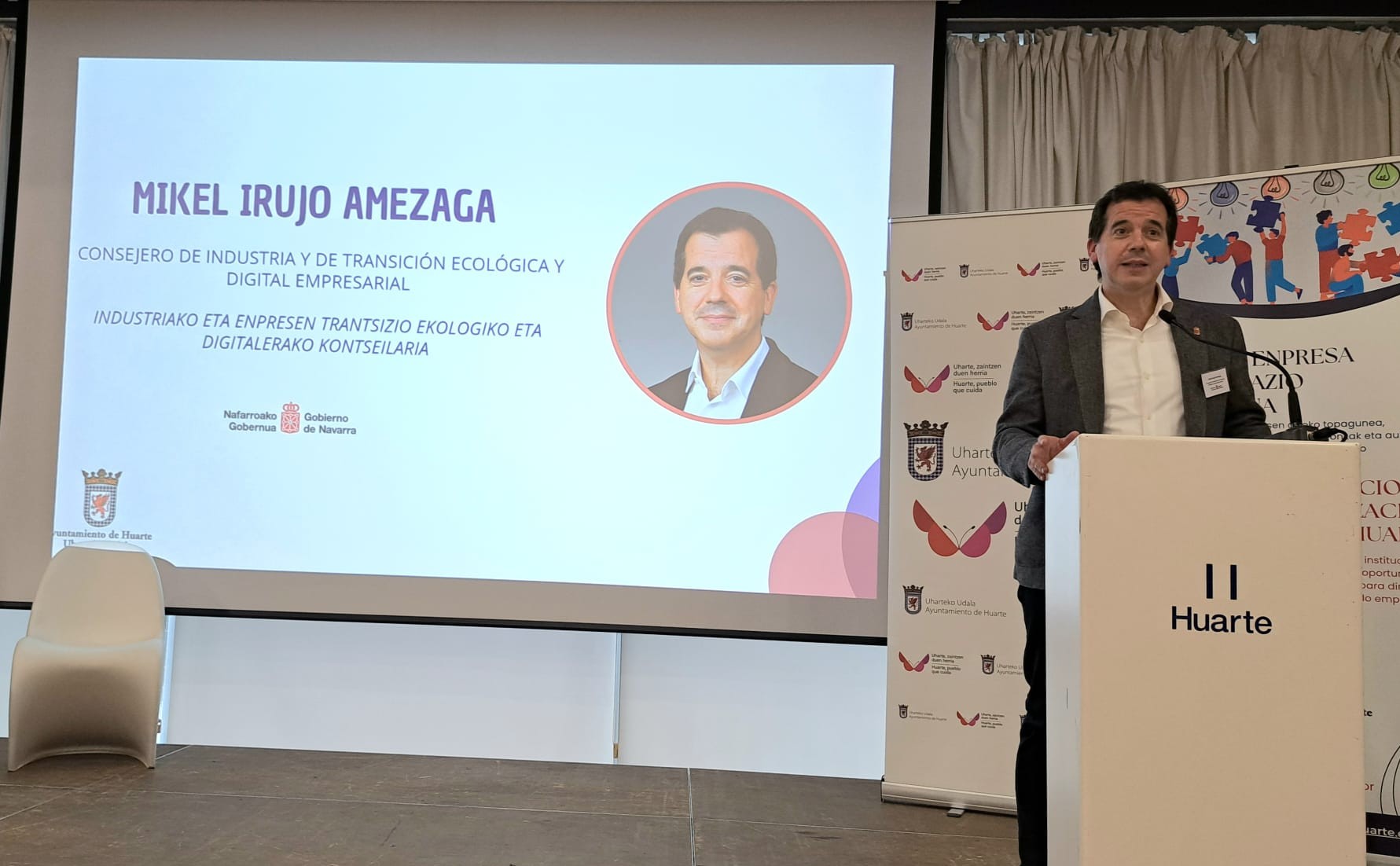 El Gobierno de Navarra, a través del Departamento de Industria y de Transición Ecológica y Digital Empresarial, ha participado, este jueves, en el Centro de Arte Contemporáneo de Huarte / Uharte, en la jornada de presentación del nuevo Servicio de Dinamización Empresarial, impulsado por el ayuntamiento de la localidad, con el objetivo de fortalecer la colaboración público-privada y fomentar el desarrollo económico local.