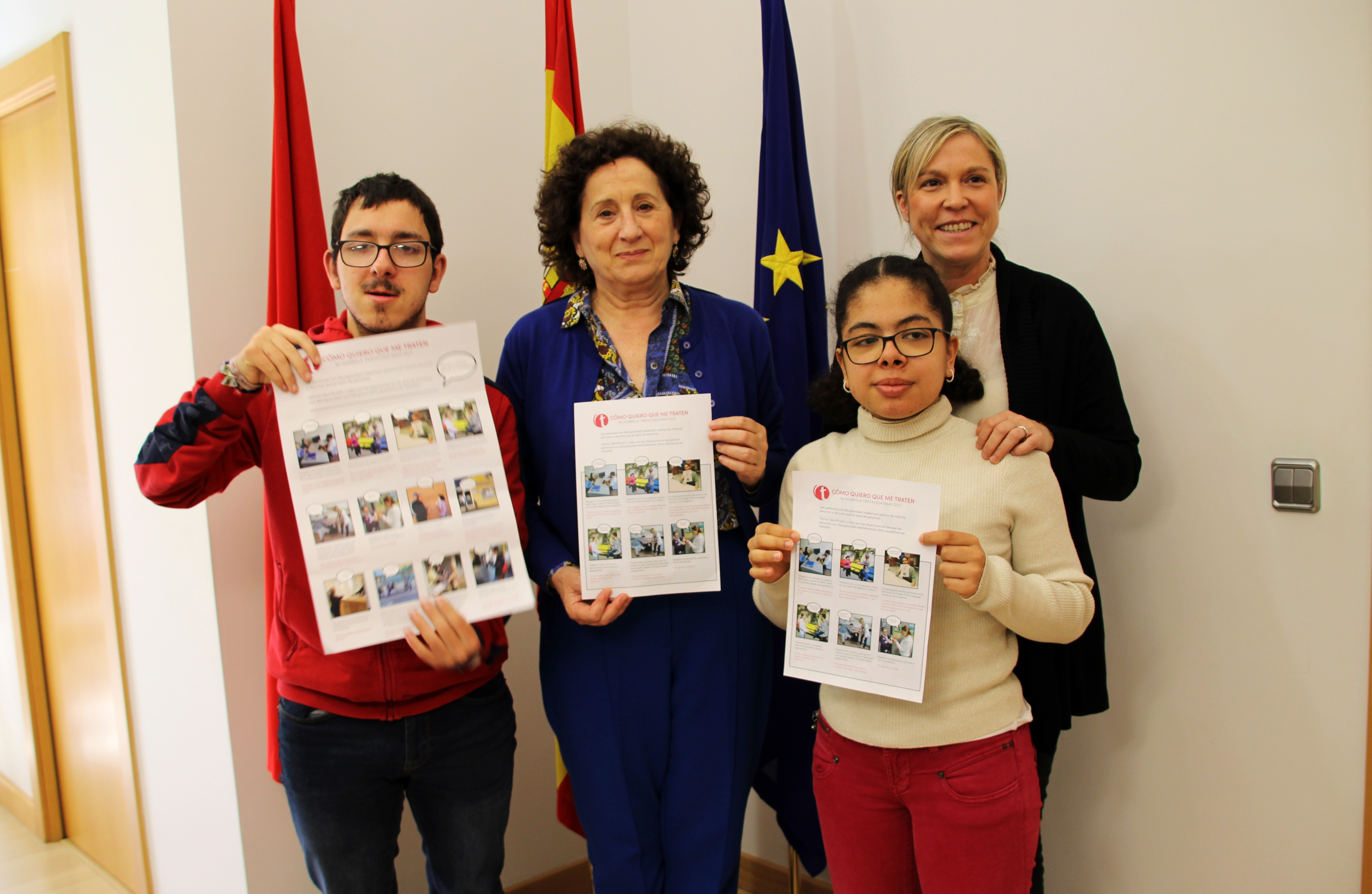 La consejera de Derechos Sociales, Economía Social y Empleo, Carmen Maeztu, ha recibido esta mañana a personas usuarias y responsables de TASUBINSA para conocer su campaña de sensibilización ‘Cómo quiero que me traten. Yo decido’, en la que personas con discapacidad intelectual recuerdan cuáles son sus derechos y ofrecen una serie de consejos para tener un mejor trato en su día a día.