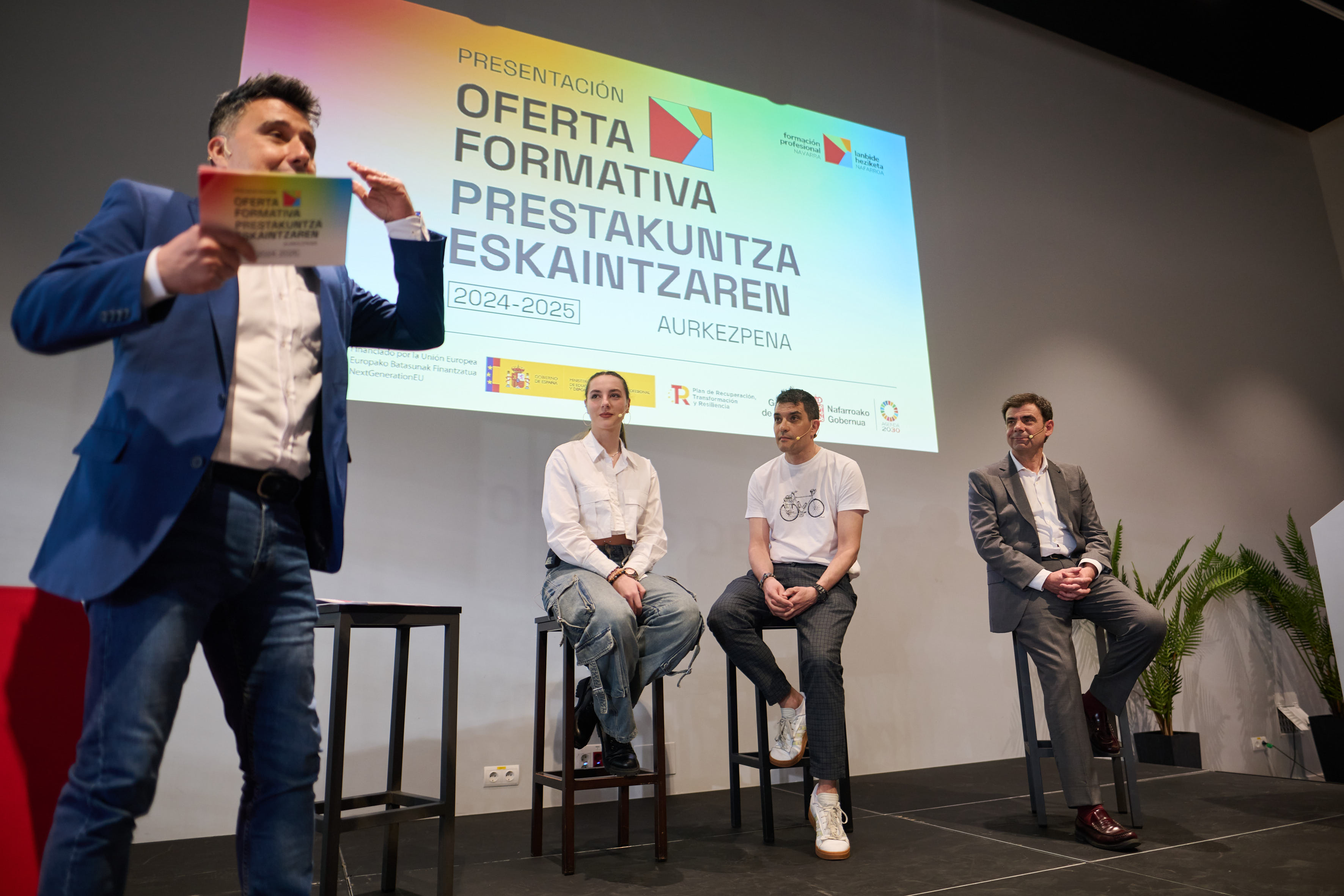 Educación ha presentado hoy la oferta de FP para 2024-2025 en el transcurso de un gran evento desarrollado en la sala Reyno Arena del pabellón Navarra Arena en el que han participado cientos de estudiantes de formación profesional, docentes y miembros de las direcciones de los centros educativos de Navarra, además de los miembros del Consejo Navarro de Formación Profesional y los responsables de la dirección general de FP del Departamento, entre ellos el director general de FP, Luis Calatayud y el consejero de Educación, Carlos Gimeno, que ha clausurado el acto.