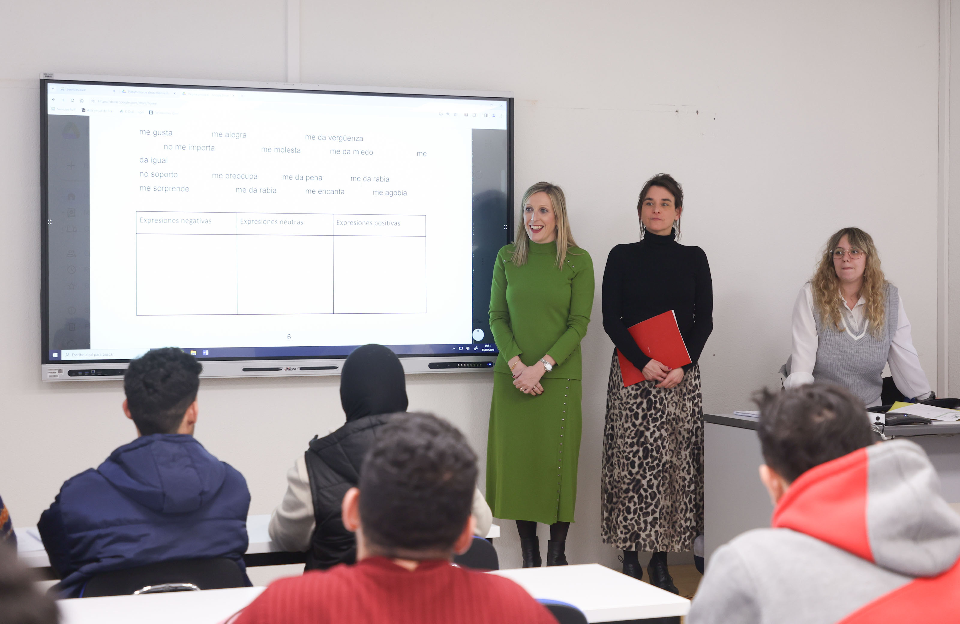 Tras la visita a las seis aulas que participan en el proyecto, la vicepresidenta Alfaro ha subrayado que Navarra “es una comunidad con un alto porcentaje de personas migrantes, cerca de un 20% del total de nuestra sociedad, de las cuales muchas llegan sin conocer el idioma y, por tanto, sin poder desenvolverse en aspectos fundamentales que les permitan una vida independiente y autónoma”. Un motivo, ha manifestado, por el que “resulta obligatorio para las instituciones públicas facilitar cursos y herramientas que permitan algo tan básico como lo es conocer la lengua castellana”.