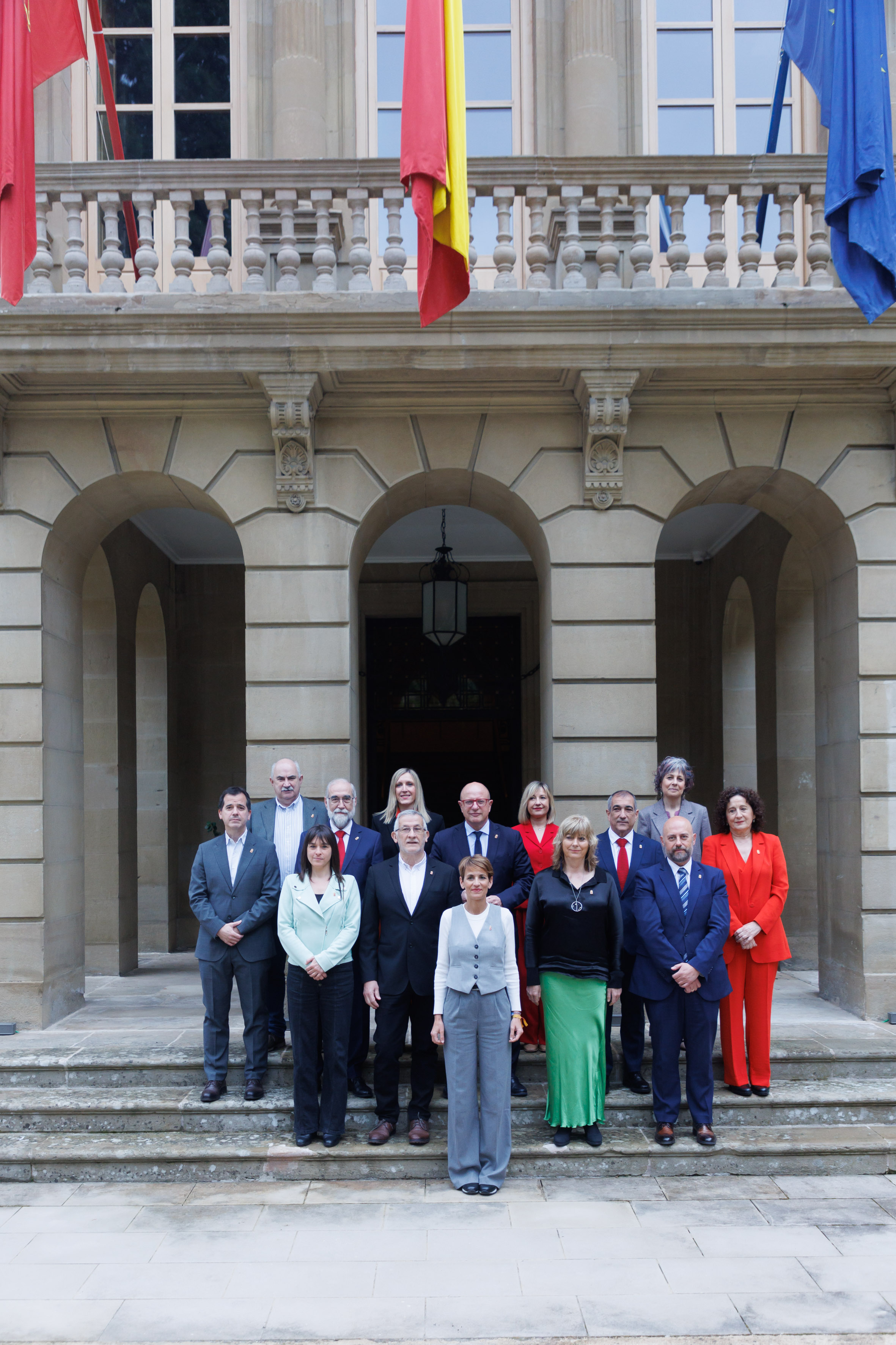 El Gobierno de Navarra ha realizado esta mañana una sesión fotográfica en los jardines del Archivo del Palacio de Navarra para actualizar la foto oficial del Ejecutivo, que ha sufrido algunas modificaciones en su composición desde el pasado mes de septiembre.