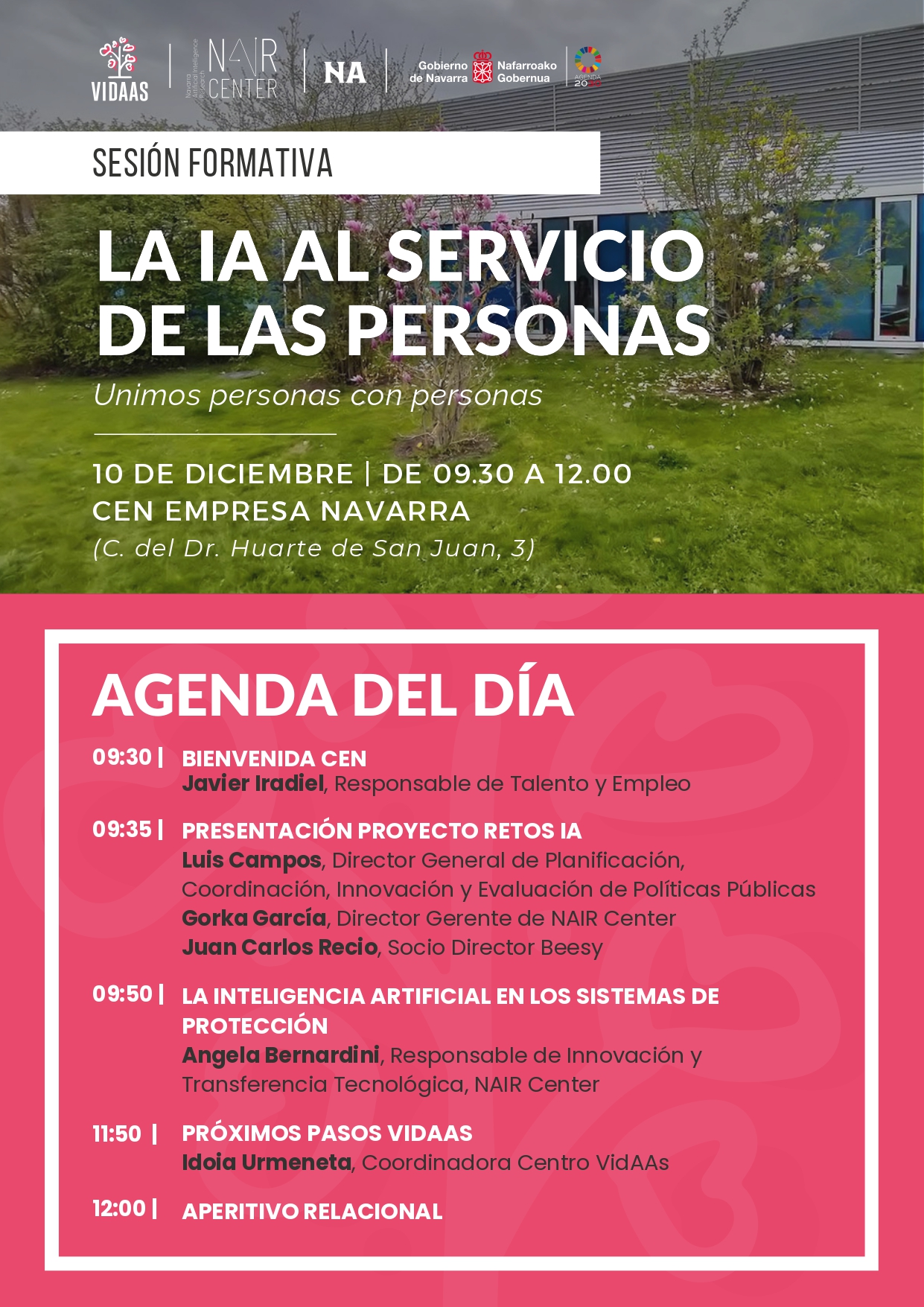 El evento, que lleva por título 'La IA al servicio de las personas', está dirigido a entidades sociales, empresas, universidades y centros tecnológicos, tendrá lugar en la sede de la Confederación Empresarial de Navarra (CEN), entidad que integra el Consejo de VidAAS.