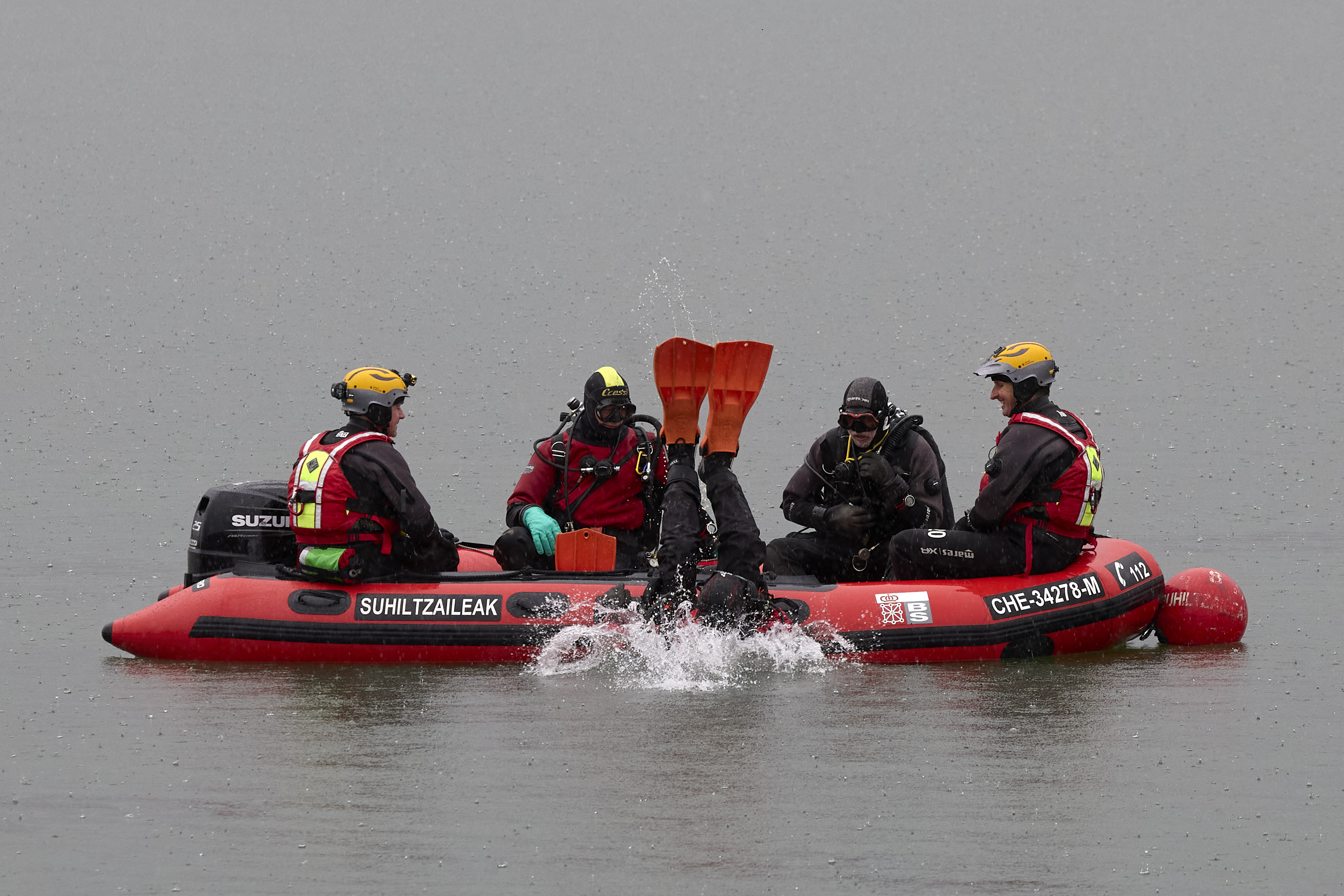 Al lugar se han desplazado catorce buzos del Grupo de Rescate Acuático (GRA), cinco bomberos y un cabo con una autobomba y dos suboficiales en el Puesto de Mando Avanzado (PMA) del Servicio de Bomberos / Nafarroako Suhiltzaileak, para el rescate de las víctimas y la búsqueda y recuperación de la caja negra de la aeronave. Además, ha acudido a la zona una patrulla de la Policía Foral; seis técnicos del Servicio de Emergencias, Prevención y Protección Civil; y, por parte del SNS-O, un médico, tres enfermeras y la jefa de la unidad de transporte sanitario urgente, y tres ambulancias de soporte vital avanzado.