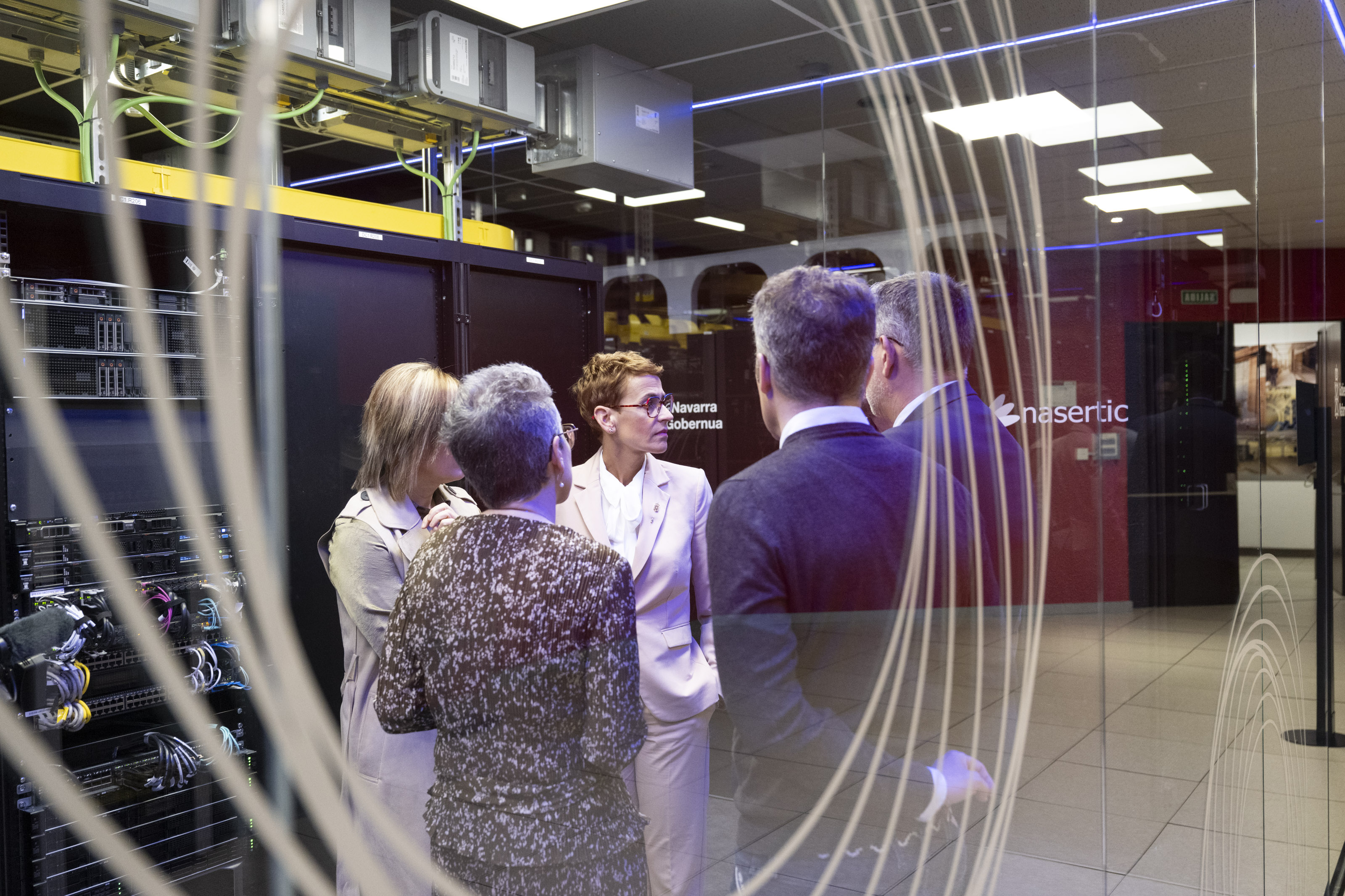 La Presidenta ha estado acompañada por la delegada del Gobierno en Navarra, Alicia Echeverría; el consejero de Universidad, Innovación y Transformación Digital, Juan Luis García; y Luis Campos, director gerente de NASERTIC, empresa que gestiona el CPD.