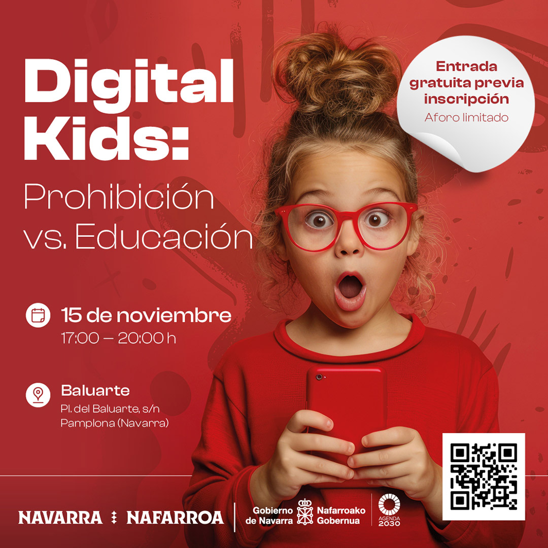 El Gobierno de Navarra celebrará el próximo 15 de noviembre la jornada ‘Digital Kids: Prohibición vs. Educación’, concebida como un punto de encuentro para que familias y especialistas puedan debatir sobre el impacto del uso de pantallas y dispositivos móviles entre la infancia y la adolescencia, así como conocer estrategias y herramientas para afrontar una educación digital más consciente y segura.