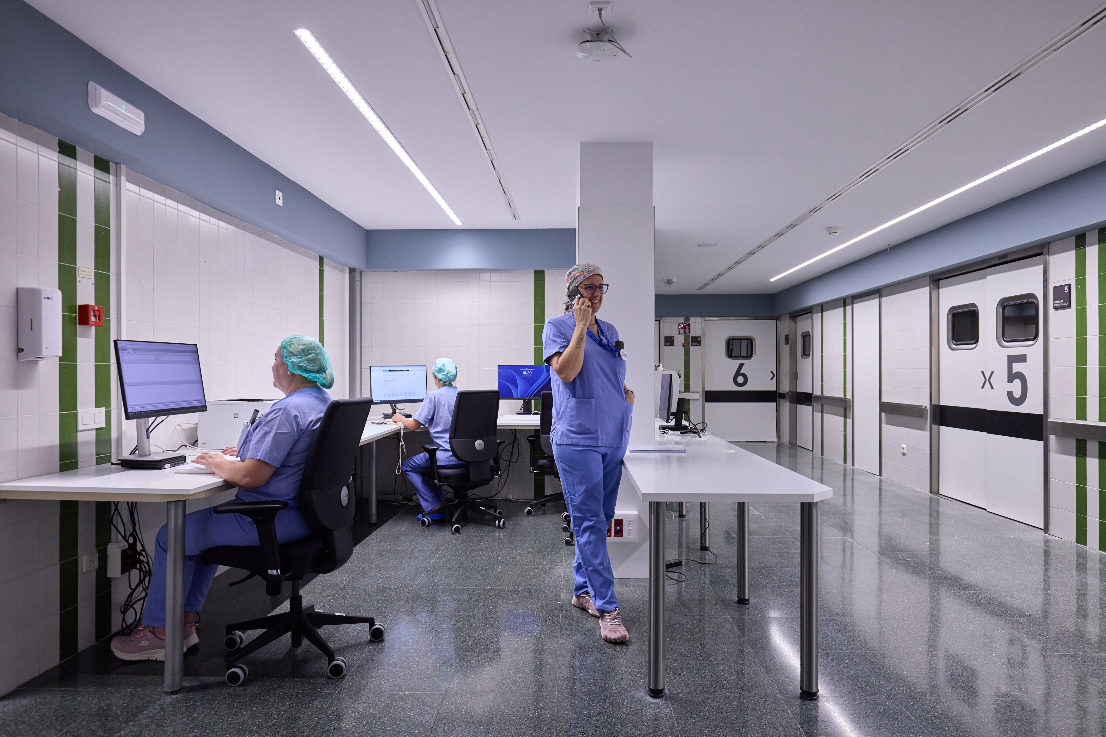 Entre las actuaciones realizadas, se ha renovado parte de la climatización del bloque quirúrgico, una medida de eficiencia energética que repercute asimismo en la confortabilidad y en la seguridad de los pacientes. También inciden en la seguridad las actuaciones realizadas en la mejora de la estanqueidad de los quirófanos, mediante la automatización de los accesos a las zonas limpias de los quirófanos, reforzando su aislamiento respecto a otras áreas.