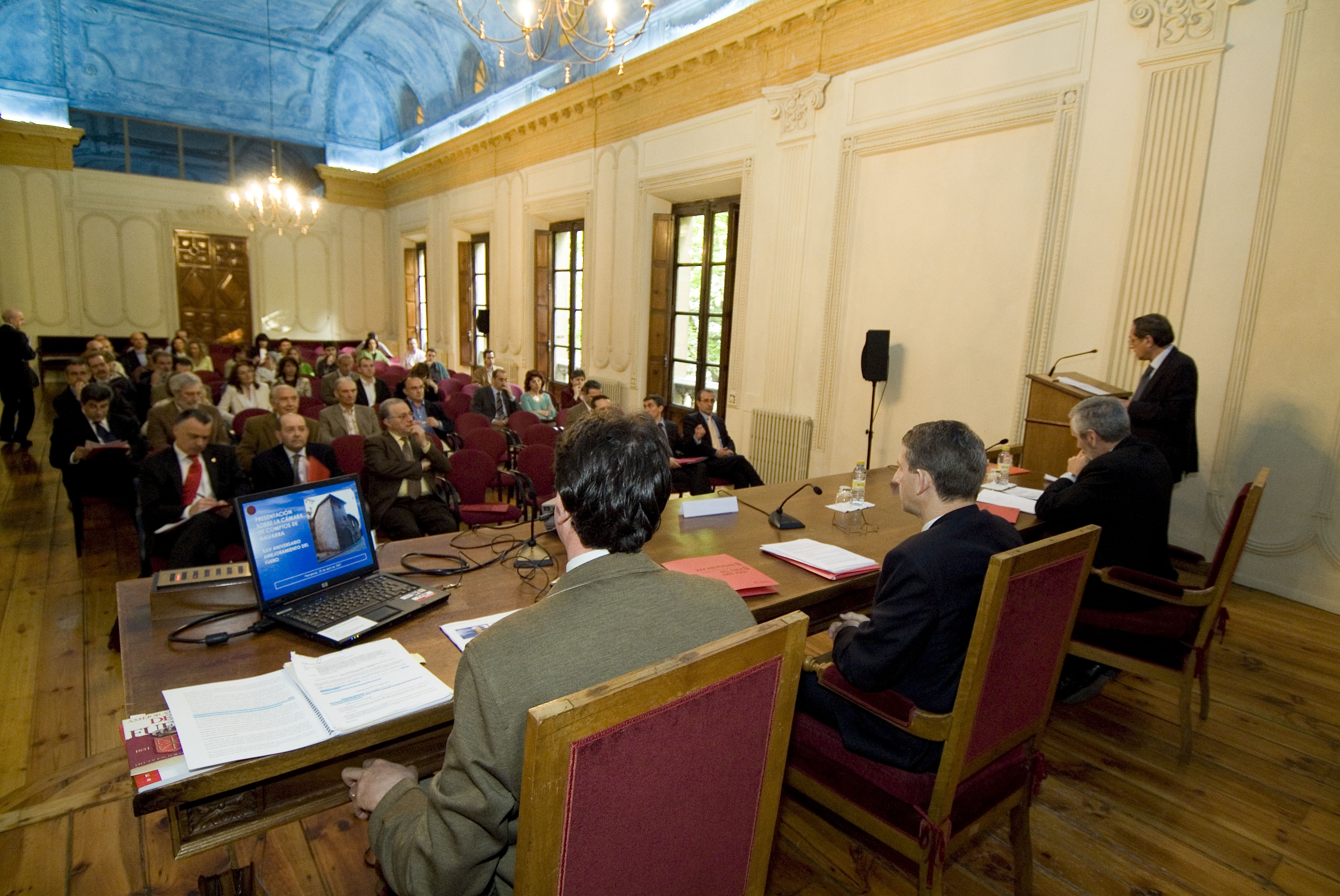 Durante toda la mañana, el centenar de asistentes al acto ha podido conocer más de cerca el papel y el proyecto de futuro de las siguientes instituciones navarras: la Cámara de Comptos (ponencia a cargo del secretario general de la institución, Luis Ordoki Urdaci), el Defensor del Pueblo de Navarra (presentado por el propio defensor, Francisco Javier Enériz Olaechea), el Consejo de Navarra (por el presidente del Consejo, Enrique Rubio Torrano) y la organización judicial de la Comunidad Foral, que ha sido explicada por el presidente del Tribunal Superior de Justicia de Navarra (TSJN), Juan Manuel Fernández Martínez.