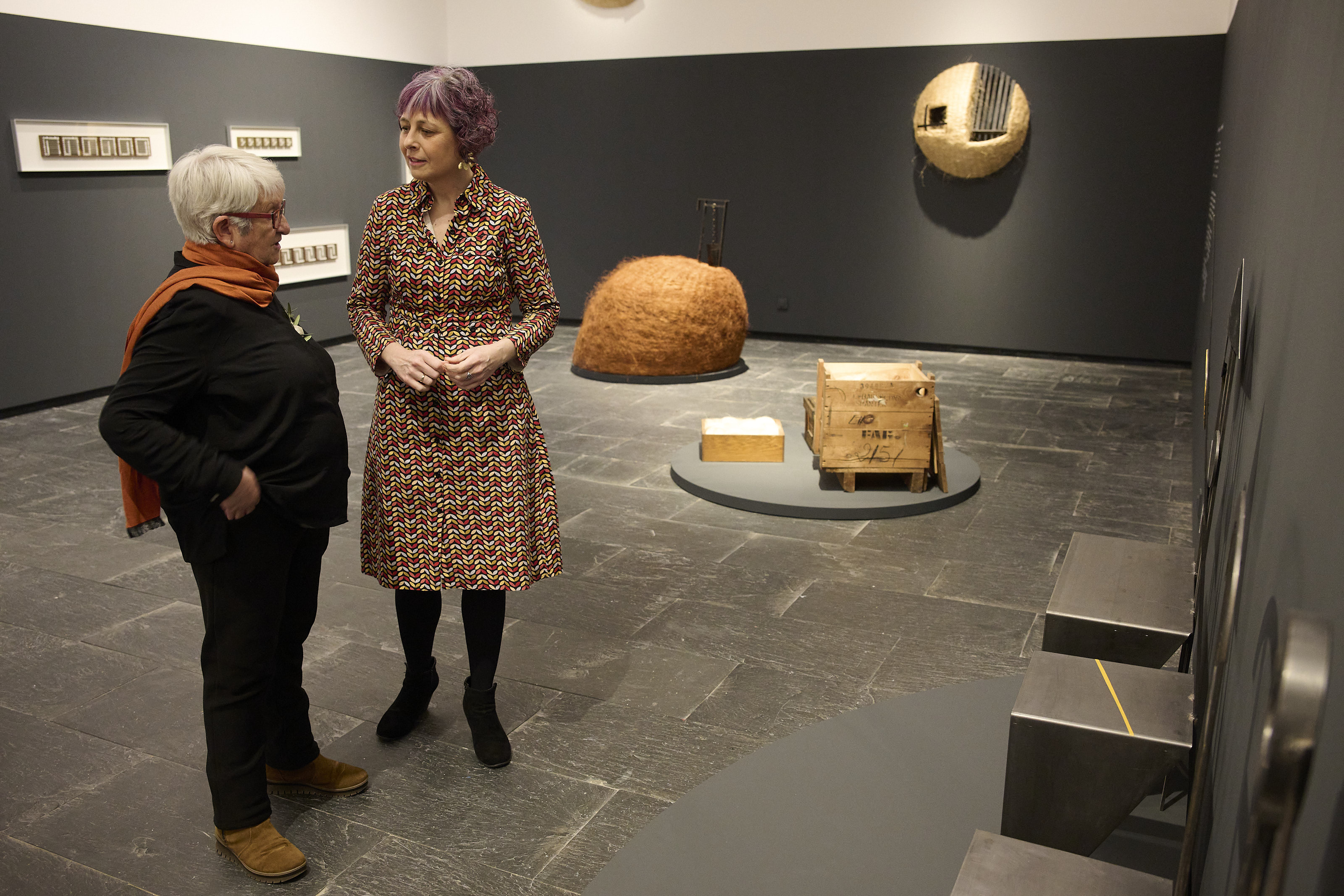 La exposición ha contado con la colaboración de la propia Mertxe Sueskun, que cede todas las obras expuestas, a las que se suman un préstamo particular y las dos obras que posee el Museo de Navarra adquiridas en 2021. La consejera Esnaola ha señalado, en su intervención, que con este tipo de muestras “el Museo de Navarra ratifica su apoyo a los y las creadoras navarras, visibilizando su obra y acercándola al público”. Esnaola ha destacado también el gusto de Sueskun por las formas “elementales y esenciales”, algo que se ha convertido en “seña de identidad” de la escultora navarra que, ha continuado Esnaola, “destaca en sus creaciones de objetos descontextualizados de uso cotidiano y doméstico, que nos trasladan a evocaciones sentimentales, e incluso a una reflexión más profunda y compleja del mundo".