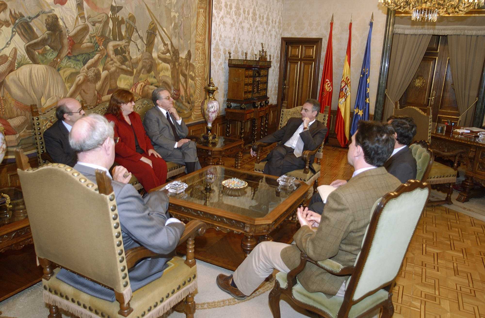 El Presidente del Gobierno de Navarra, Miguel Sanz Sesma, recibió ayer en su despacho del Palacio de Navarra a cuatro miembros del Tribunal de Cuentas del Estado, en la visita que realizaron a Navarra para entrevistarse con el presidente de la Cámara de Comptos de Navarra, Luis Muñoz Garde, que también participó en este encuentro.