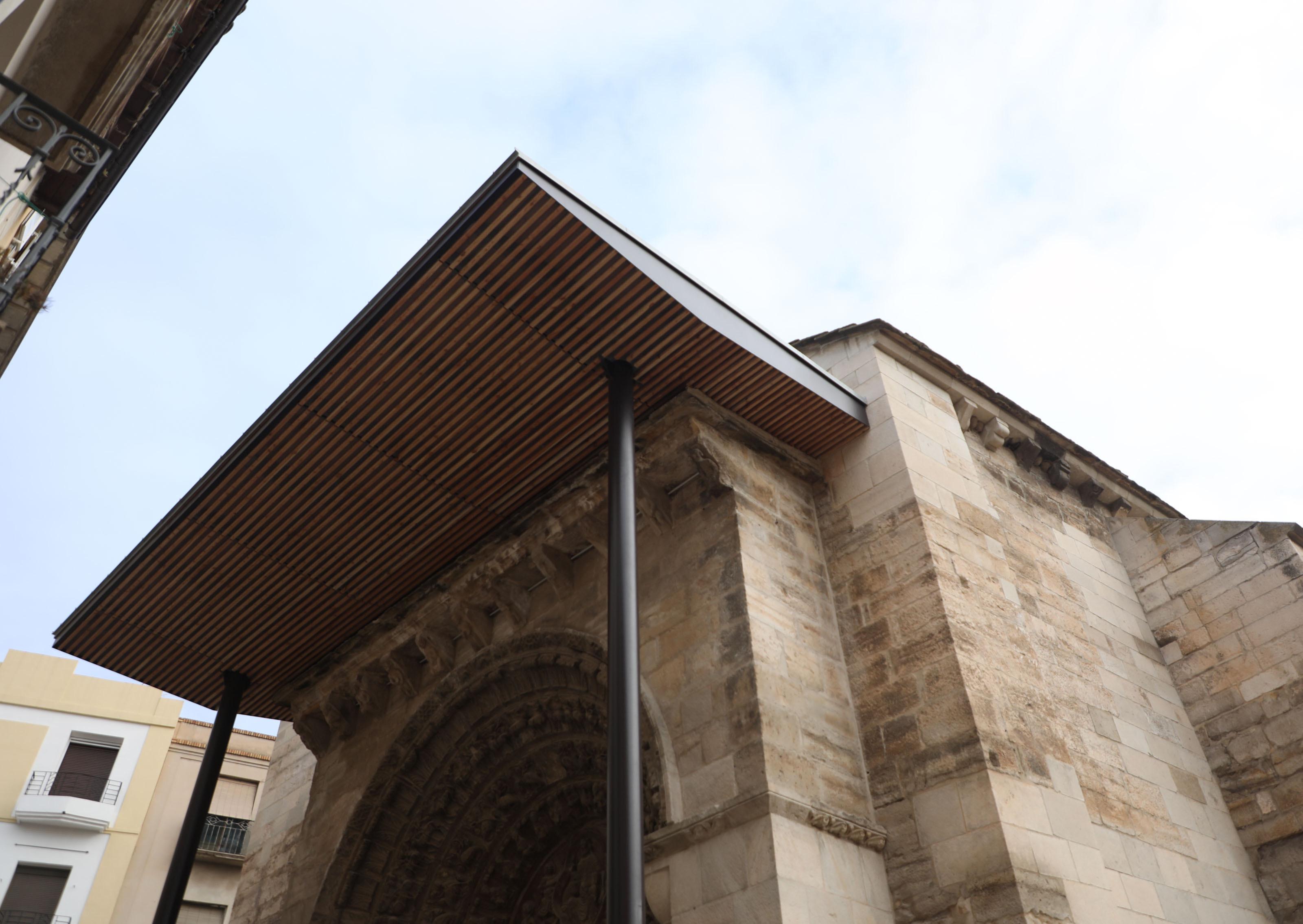 Se ha colocado una cubierta que protegerá la portada románica de las inclemencias meteorológicas