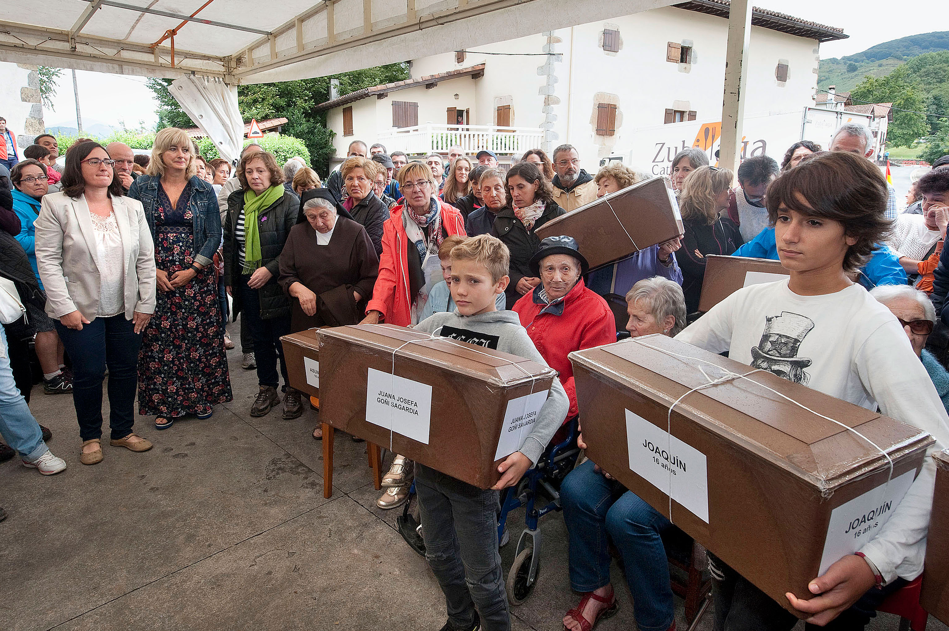 Ana Ollo ha agradecido al ayuntamiento de Donamaría-Gaztelu, "su trabajo y colaboración en este acto" y ha explicado que la exhumación de Juana Josefa Goñi Sagardía y sus seis hijos ha requerido del trabajo de muchas personas y asociaciones memorialistas, gracias a las cuales, "finalmente, el año pasado, en el marco del plan de exhumaciones impulsado por el Gobierno de Navarra, la Sociedad de Ciencias Aranzadi, con la colaboración del grupo de espeleología Satorrak, consiguió culminar el trabajo y certificar el relato que había llegado hasta nuestros días".