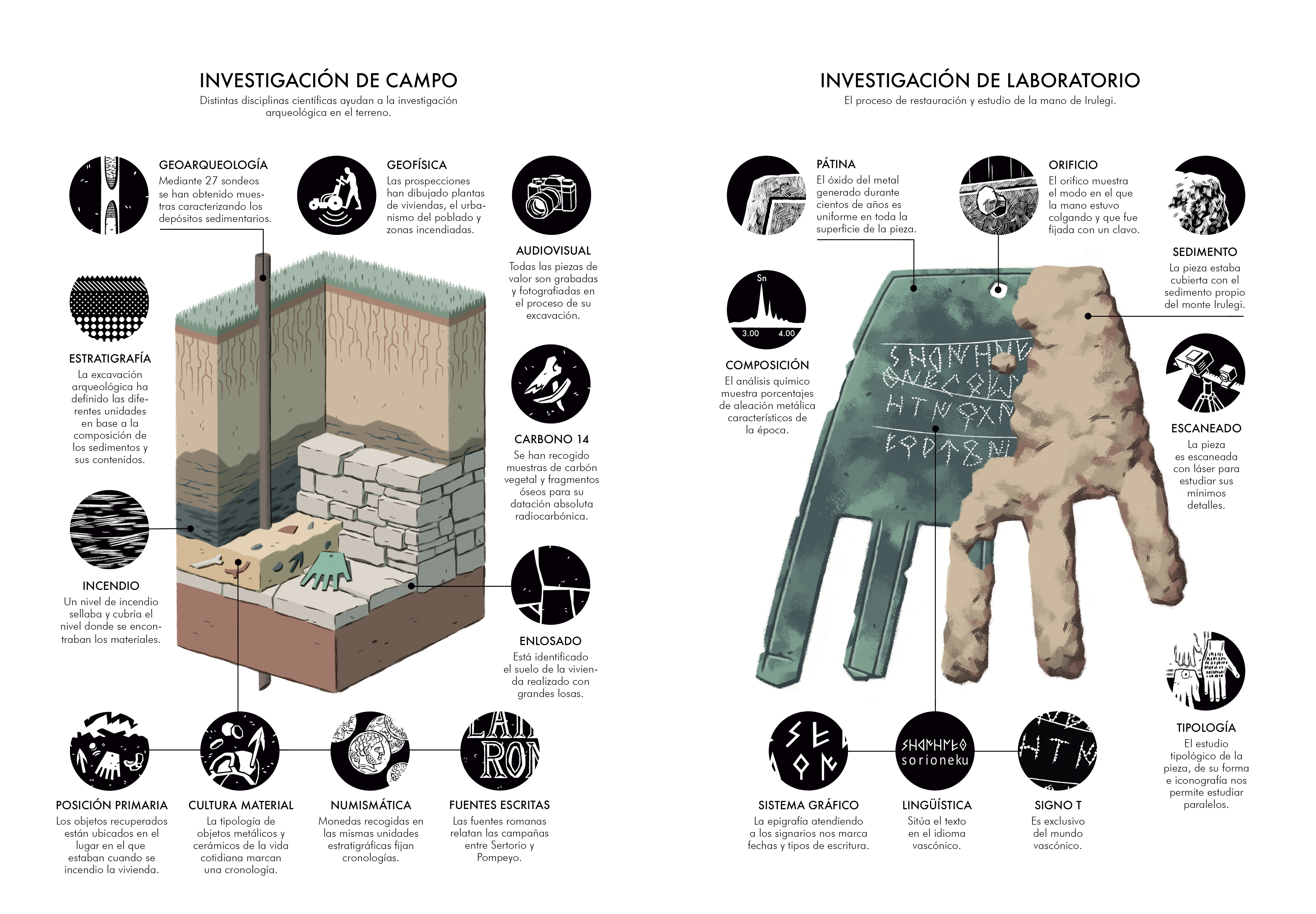 En consecuencia, la “mano de Irulegi” introduce novedades significativas en el mundo arqueológico y lingüístico. Por un lado, confirma la existencia de un sistema gráfico específico, derivado de una variante del signario Ibérico, llamado “signario vascónico”. Además, certifica el empleo de la lengua vascónica en el área geográfica en el que ha sido descubierta a inicios del siglo I a.C.; es decir, hace más de 2.000 años.
