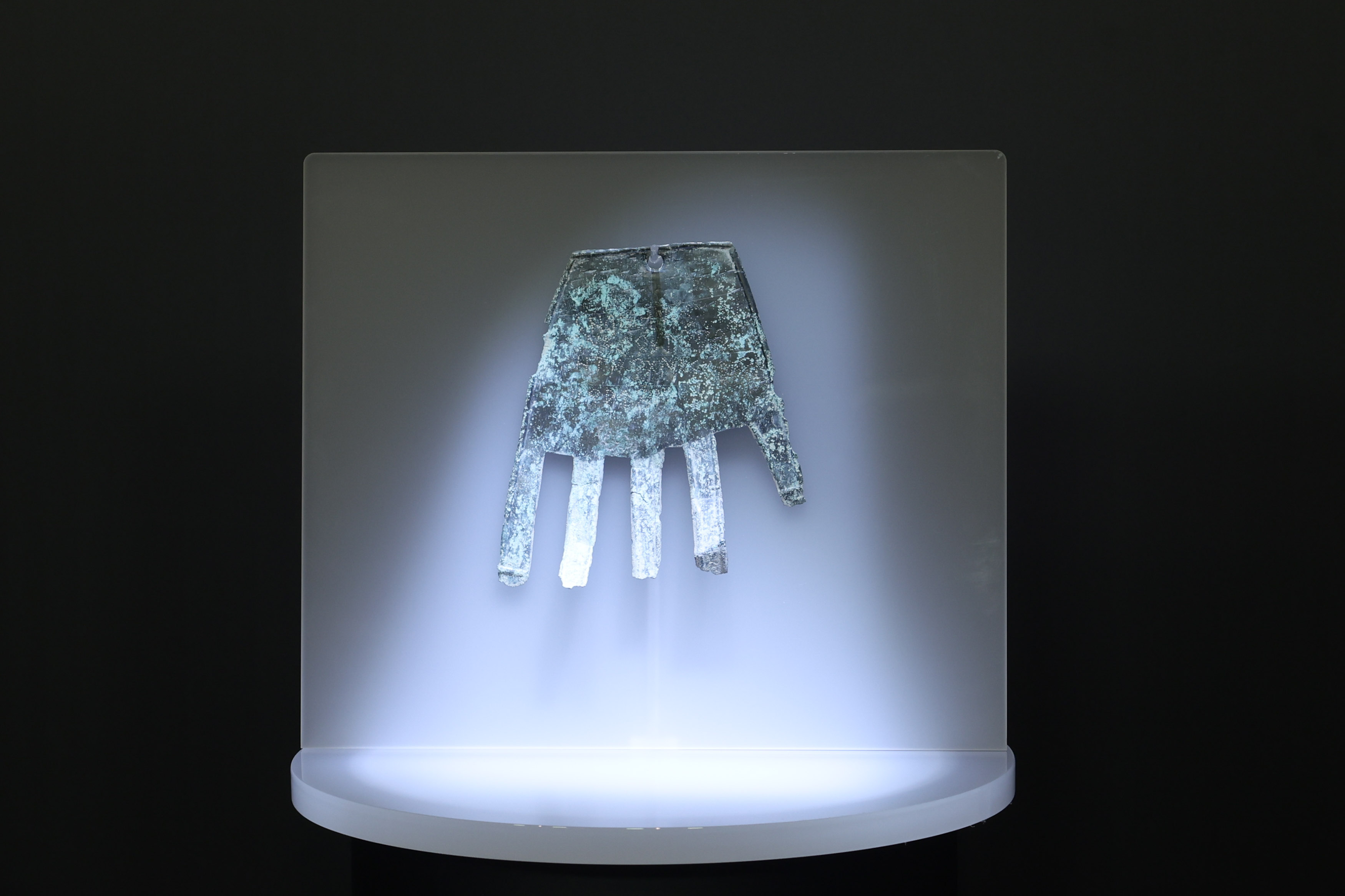 La pieza en cuestión es una lámina de bronce, cuya pátina contiene un 53,19% de estaño, un 40,87% de cobre y un 2,16% plomo, algo que es habitual en aleaciones antiguas. El objeto está recortado para representar la forma de una mano derecha algo esquemática, pero de tamaño natural. La lámina es lisa en el lado de la palma, pero en el lado del dorso presenta la forma de las uñas, aunque no se han conservado, debido a su fragilidad, las correspondientes a los dedos anular, corazón e índice. Sus medidas actuales son 143,1 mm de altura, un grosor de 1,09 mm y una anchura de 127,9 mm. Su peso alcanza 35,9 g.