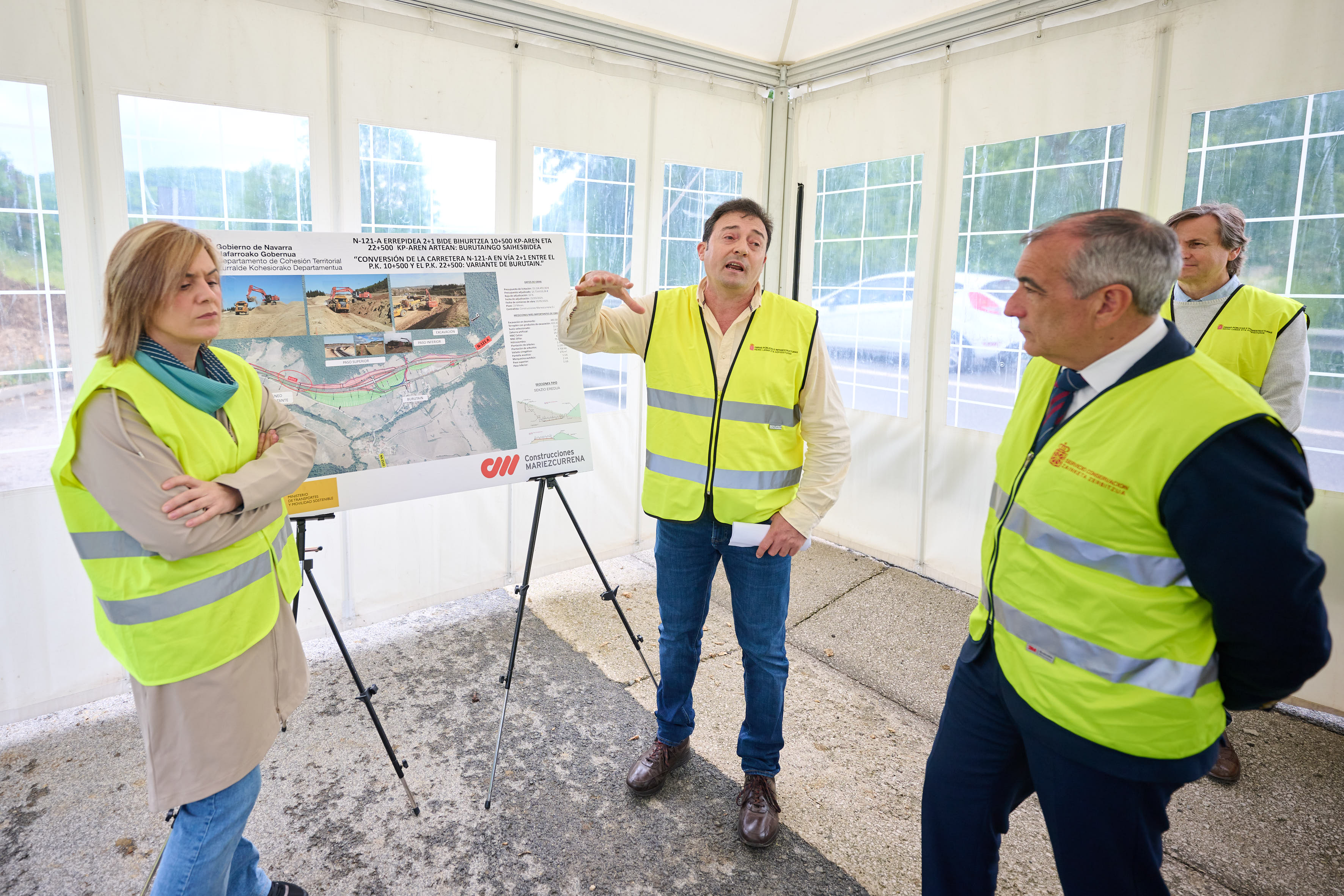 El consejero de Cohesión Territorial, Óscar Chivite, ha visitado esta mañana el inicio de las obras, que se enmarcan en las actuaciones para transformar la N-121-A en una carretera 2+1.En el acto han participado también la delegada del Gobierno en Navarra, Alicia Echeverría; el director general de Obras Públicas e Infraestructuras, Pedro López; y el jefe de la Sección de Construcción de Nuevas Infraestructuras, y director de la obra, Guillermo Vallejo, que ha ofrecido las explicaciones técnicas