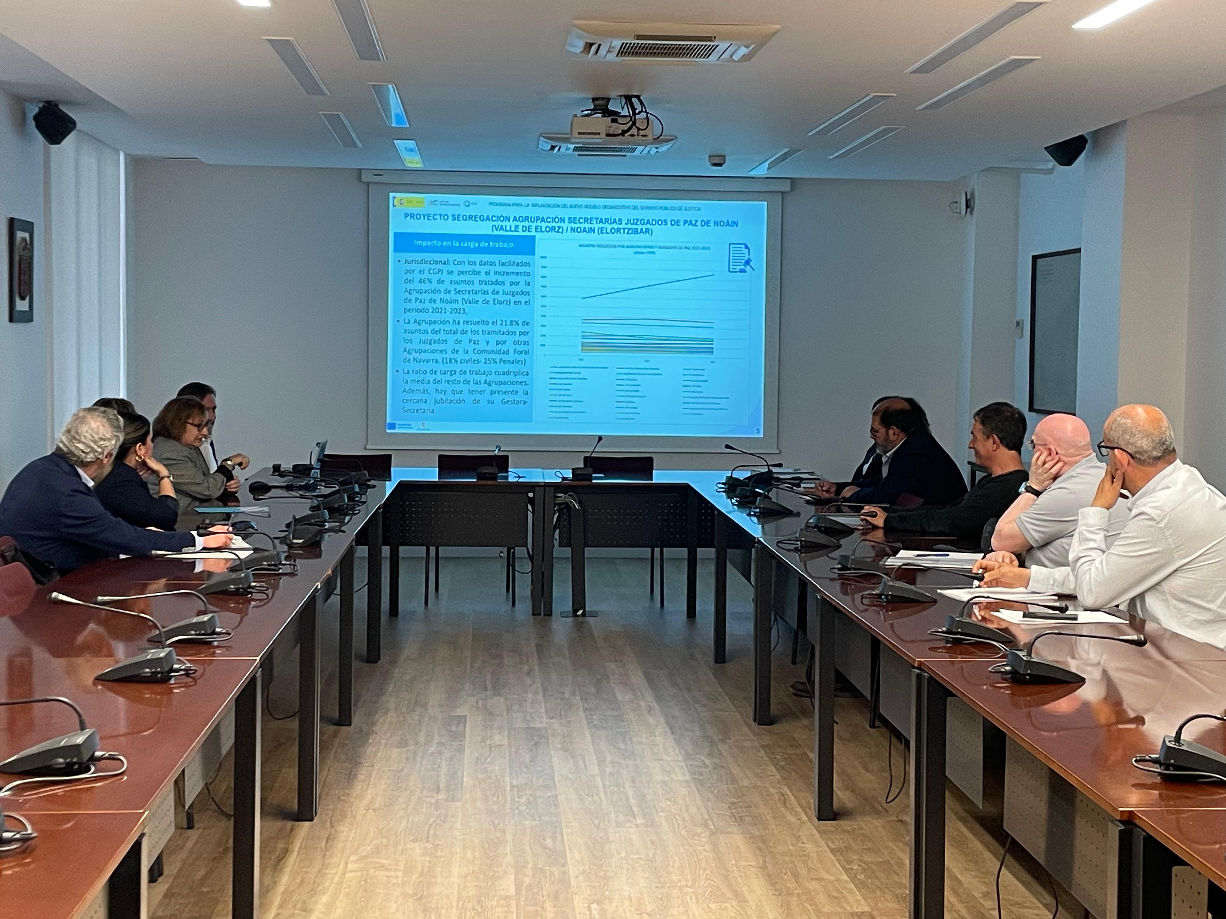 La Dirección General de Justicia del Gobierno de Navarra ha mantenido este mediodía una reunión con los alcaldes y alcaldesas de Huarte / Uharte, Valle de Egüés / Eguesibar, Aranguren, Noáin y Tiebas-Muruarte de Reta con el objetivo de presentar la propuesta de creación de una agrupación de Secretarías de Juzgados de Paz en el Valle de Egüés que agilice los trámites y acerque la justicia a la ciudadanía.