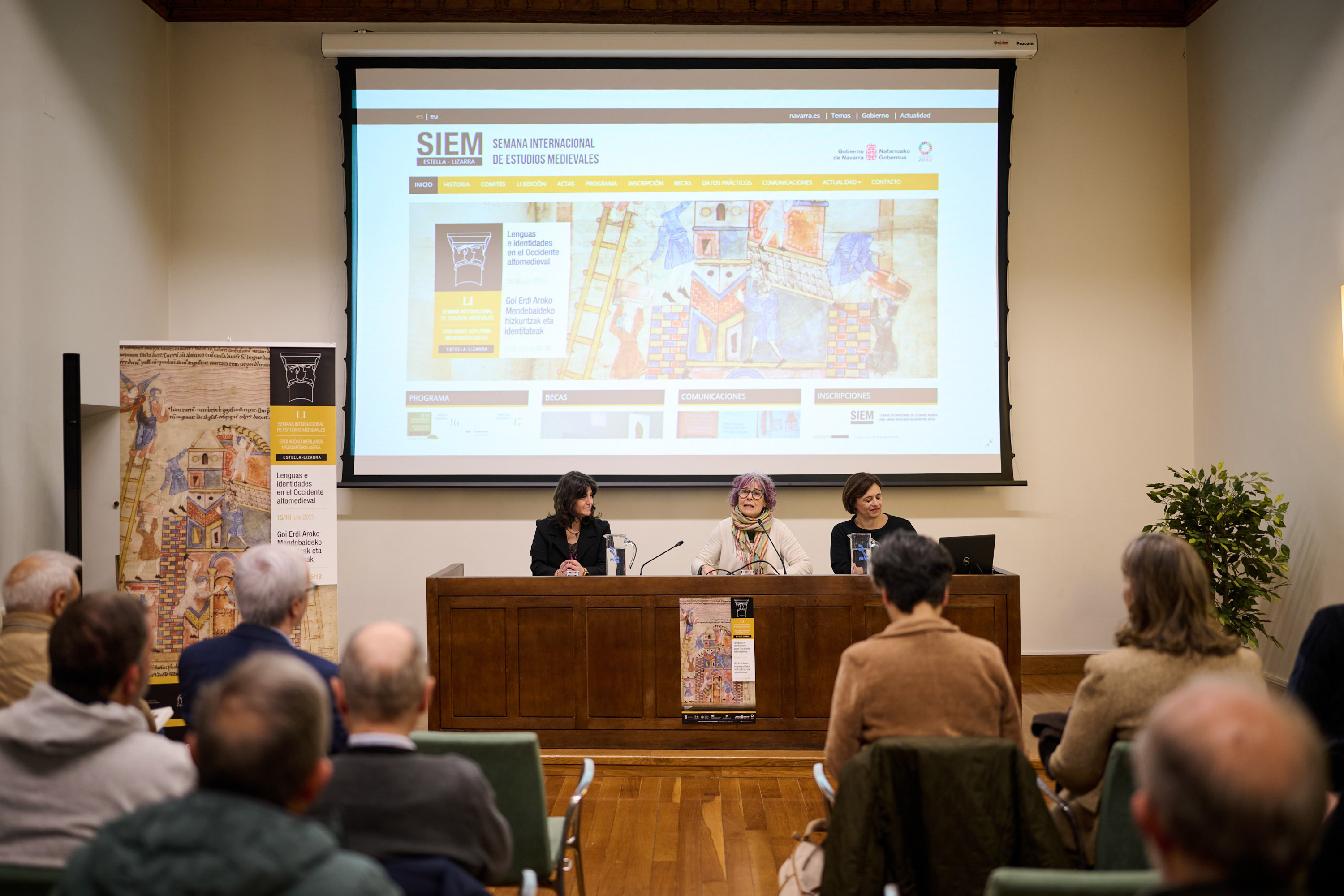 La consejera Esnaola ha subrayado la relevancia que tiene para Navarra, y especialmente para Estella-Lizarra, la celebración continuada en el tiempo de la Semana Internacional de Estudios Medievales, consolidada como un referente internacional en el ámbito del medievalismo, especialmente valioso por su apertura a nuevas generaciones de investigadoras e investigadores que enriquecen el diálogo académico con perspectivas diversas y actuales. “La Semana Internacional de Estudios Medievales es hoy un espacio abierto, que ha alcanzado una dimensión internacional y que escucha y recibe las voces de jóvenes de universidades de todo el mundo, del ámbito de la investigación y doctorandos, en un ejercicio de reflexión conjunta que consideramos imprescindible en la época actual”, ha afirmado.