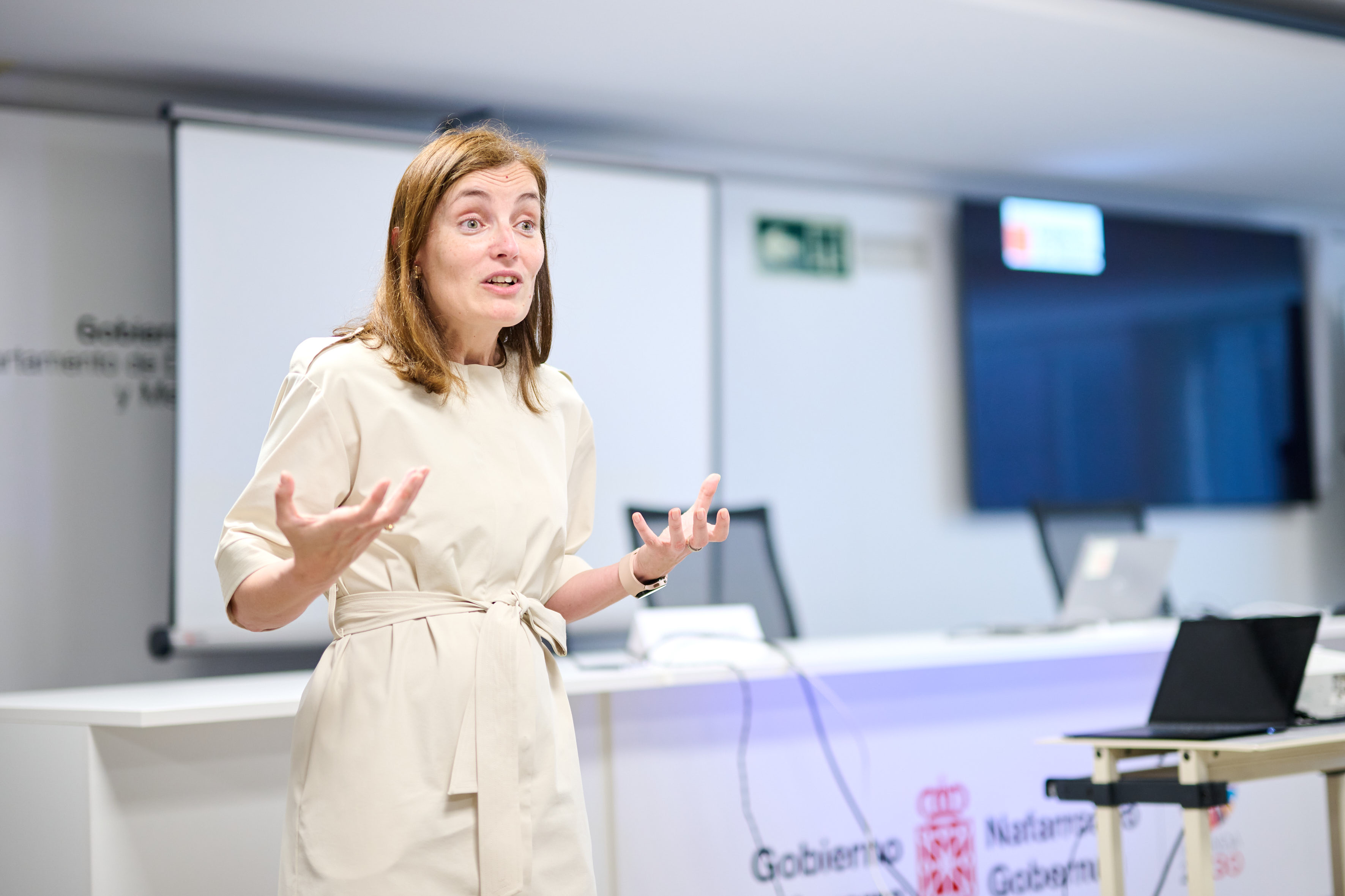 La directora general de Medio Ambiente del Gobierno foral, Ana Bretaña, y el director de la Oficina de Cambio Climático de Navarra que impulsa esta iniciativa, Fernando Señas, han participado en la apertura de la última sesión de la Asamblea, junto con el grupo de expertos.