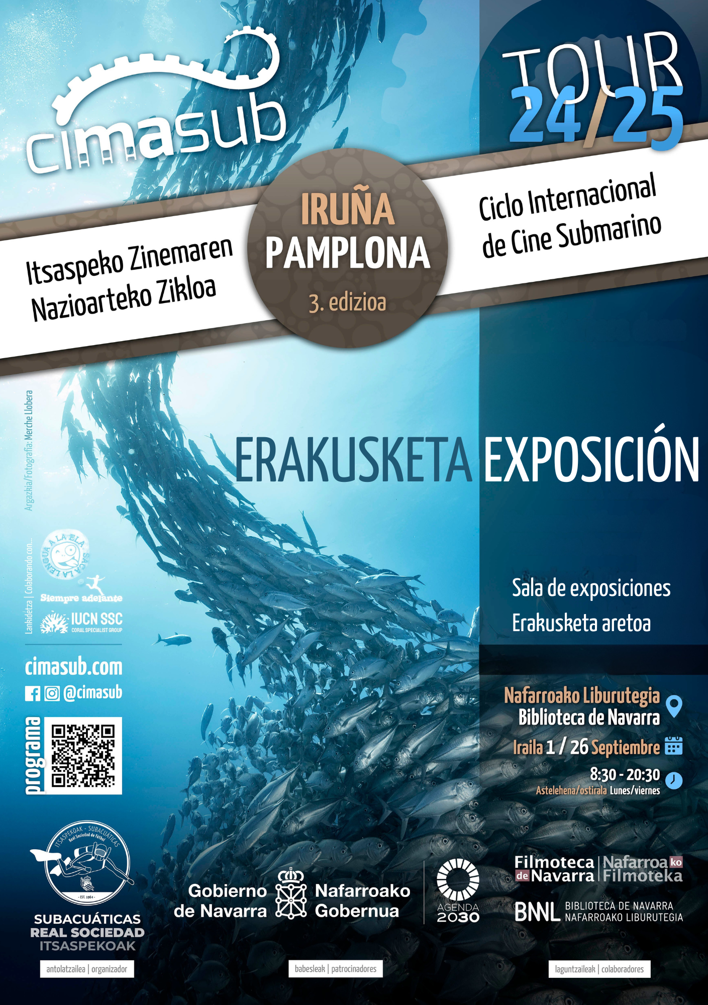 La Biblioteca de Navarra ha adelantado la programación para los meses de septiembre y octubre de 2025, con actividades y propuestas para todos los públicos. Así, en septiembre y como parte de la gira de la 49ª edición del Ciclo Internacional de Cine Submarino de San Sebastián (CIMASUB), la biblioteca, en colaboración con el Negociado de Educación Ambiental del Departamento de Desarrollo Rural y Medio Ambiente y con la Filmoteca de Navarra, acogerá una exposición fotográfica y un ciclo de cine submarino que tendrá lugar en la Sala de Proyecciones los días 10, 17 y 24 de septiembre. Así mismo, se ha programado para el día 23 una charla sobre ‘Océano y humanidad: un vínculo vital en riesgo’ que correrá a cargo de Naiara Rodríguez, bióloga marina y monitora de Bidasoa Buceo.