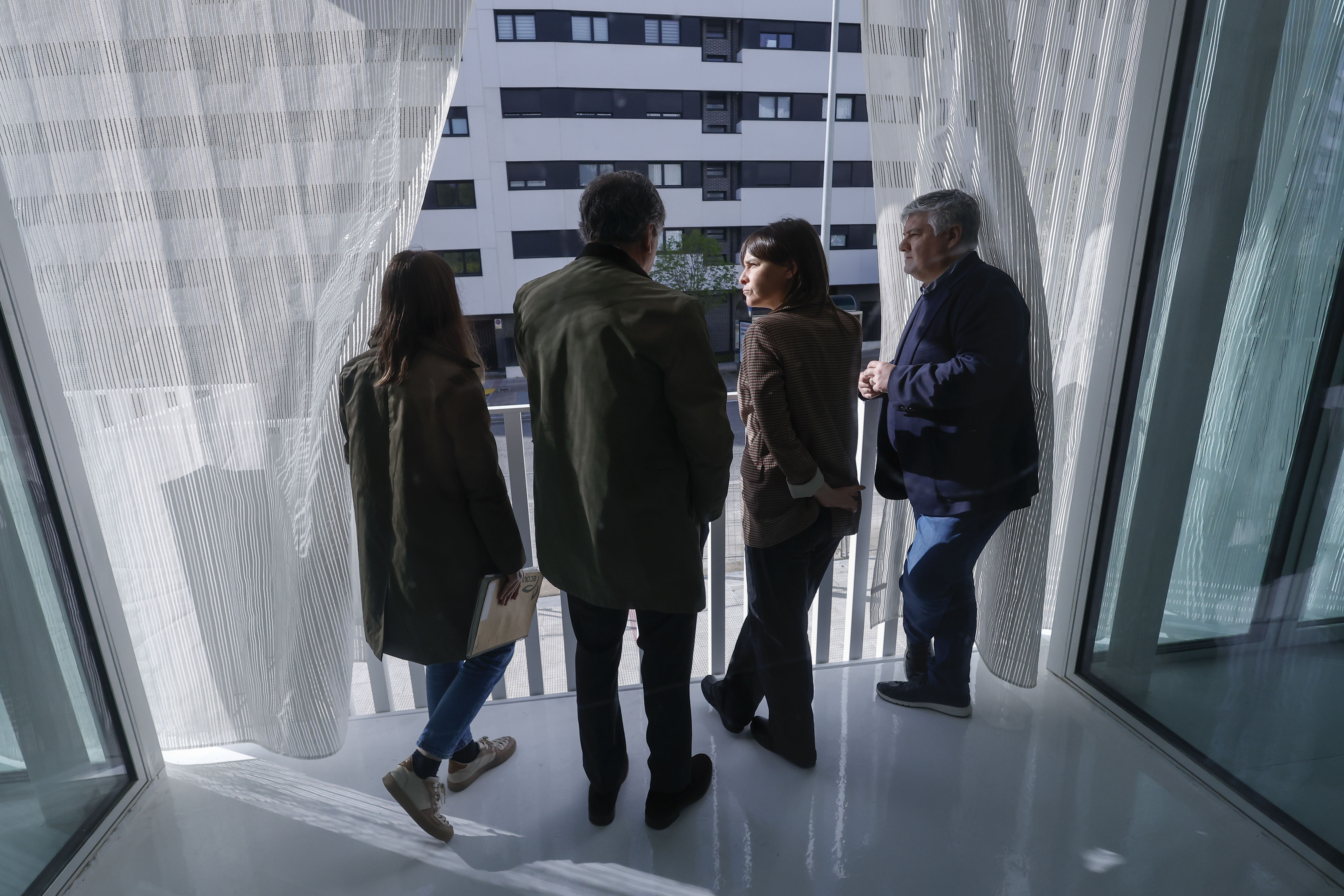 Durante la visita, Alfaro ha estado acompañada por el director gerente de Nasuvinsa, Javier Burón, así como por responsables técnicos del proyecto, que han explicado las características arquitectónicas y constructivas de este edificio, que ha obtenido la certificación Passivhaus, cumpliendo con los requisitos europeos de Edificios de Consumo Casi Nulo (ECCN).
