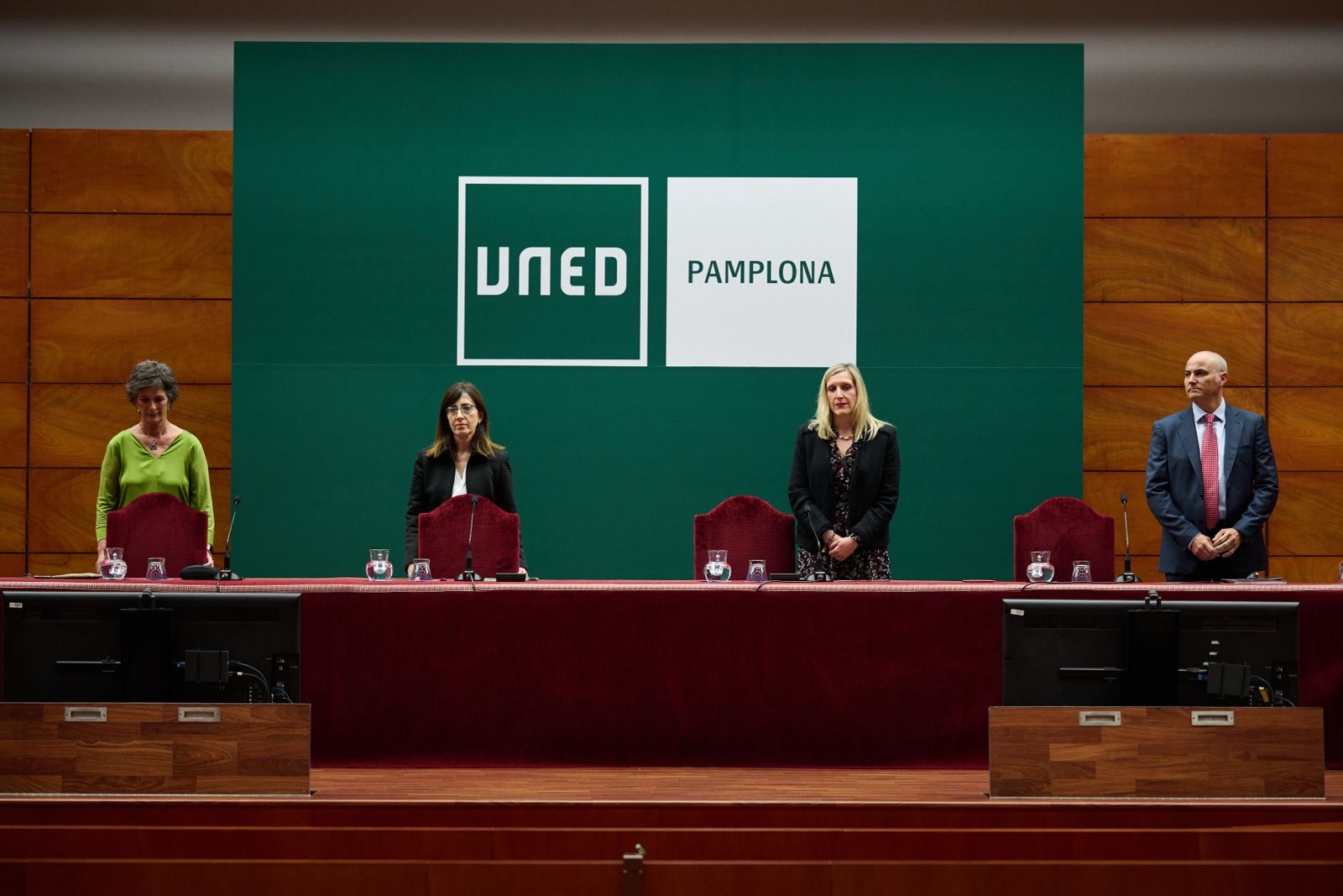Durante el acto protocolario, la apertura del curso se ha celebrado en el aula Fernando Remacha del Edificio El Sario, en Pamplona, y ha contado con la presencia de la vicerrectora de Personal Docente e Investigador de la UNED, Elisa Chuliá, y de la directora de UNED Pamplona, Teresa Imízcoz, entre otras autoridades académicas y políticas de la Comunidad Foral.