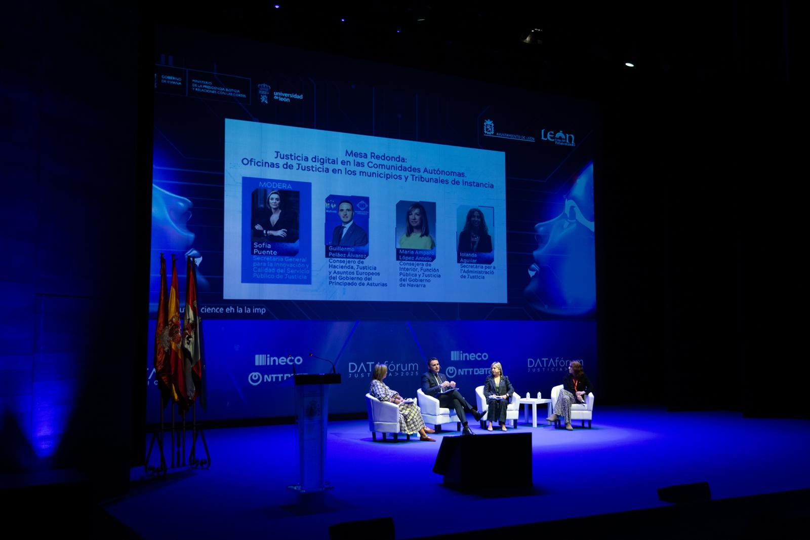 La consejera de Interior, Función Pública y Justicia, Amparo López, ha participado en una mesa redonda, junto a representantes de otras comunidades autónomas, en el foro anual del sector de la Justicia en España, el DATAfórum, que está teniendo lugar del 1 al 3 de octubre en León. En él, ha destacado el compromiso de Navarra de situar a la ciudadanía en el centro de los servicios de Justicia, hacerlos más accesibles y agilizar los trámites con plenas garantías jurídicas.