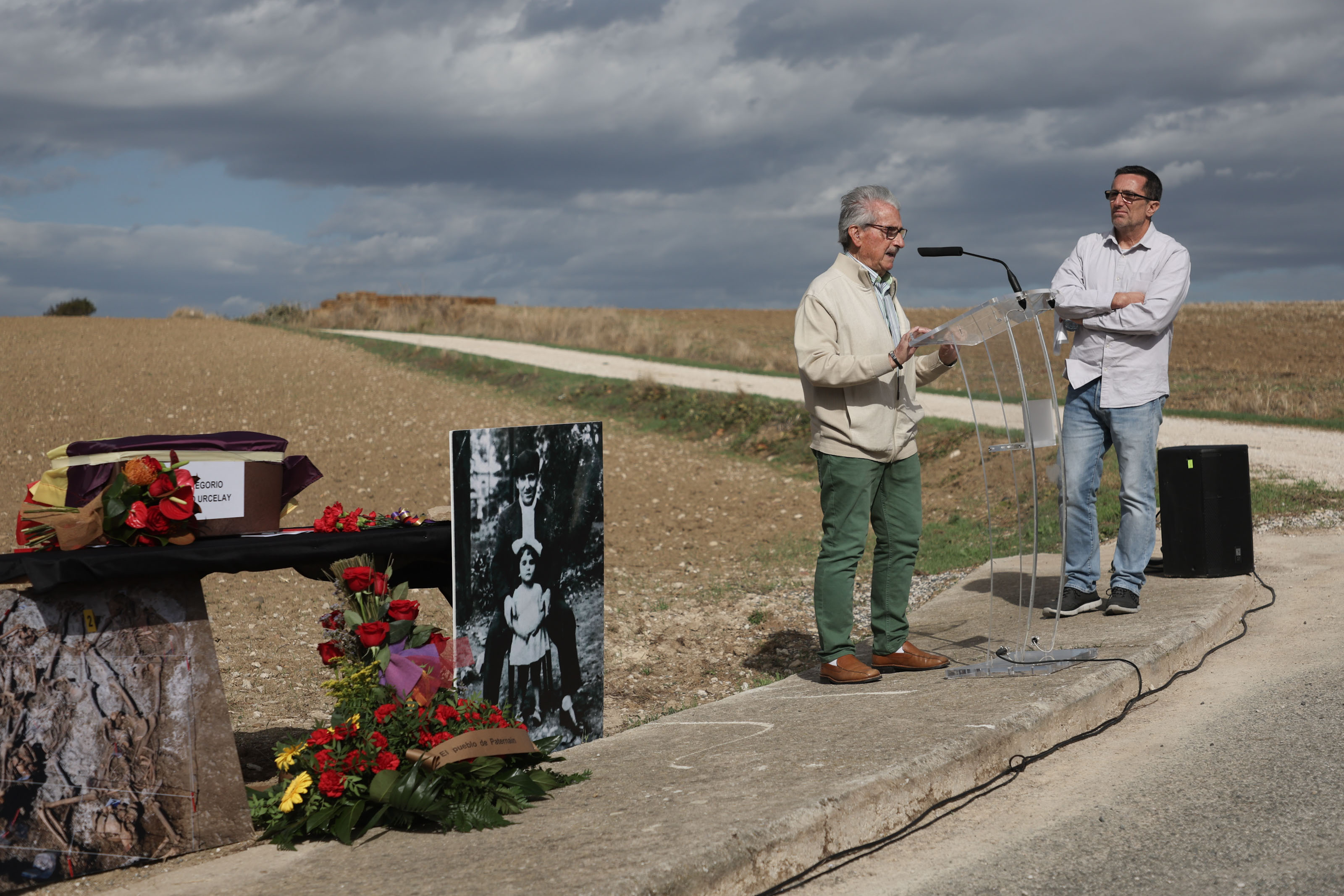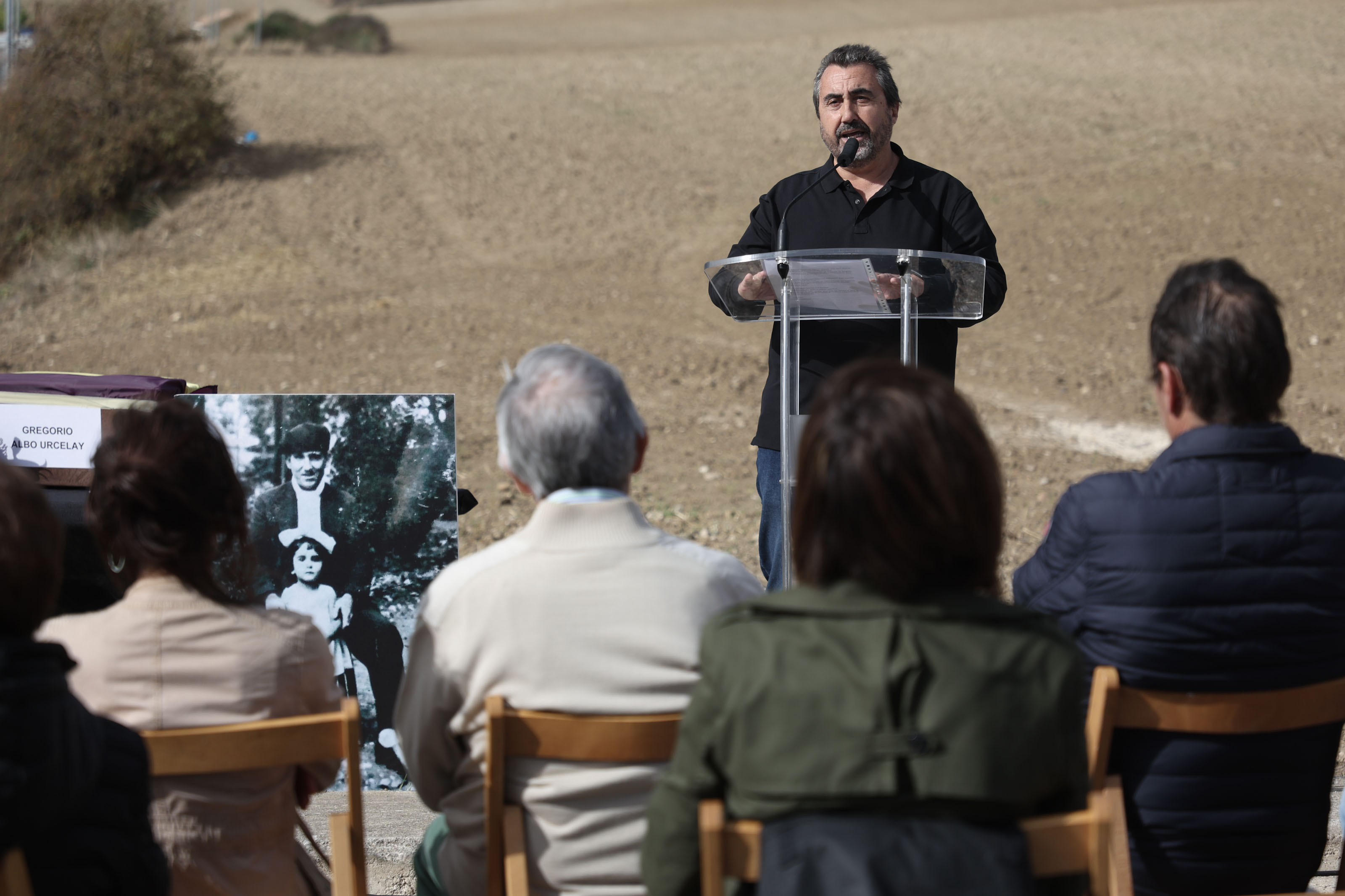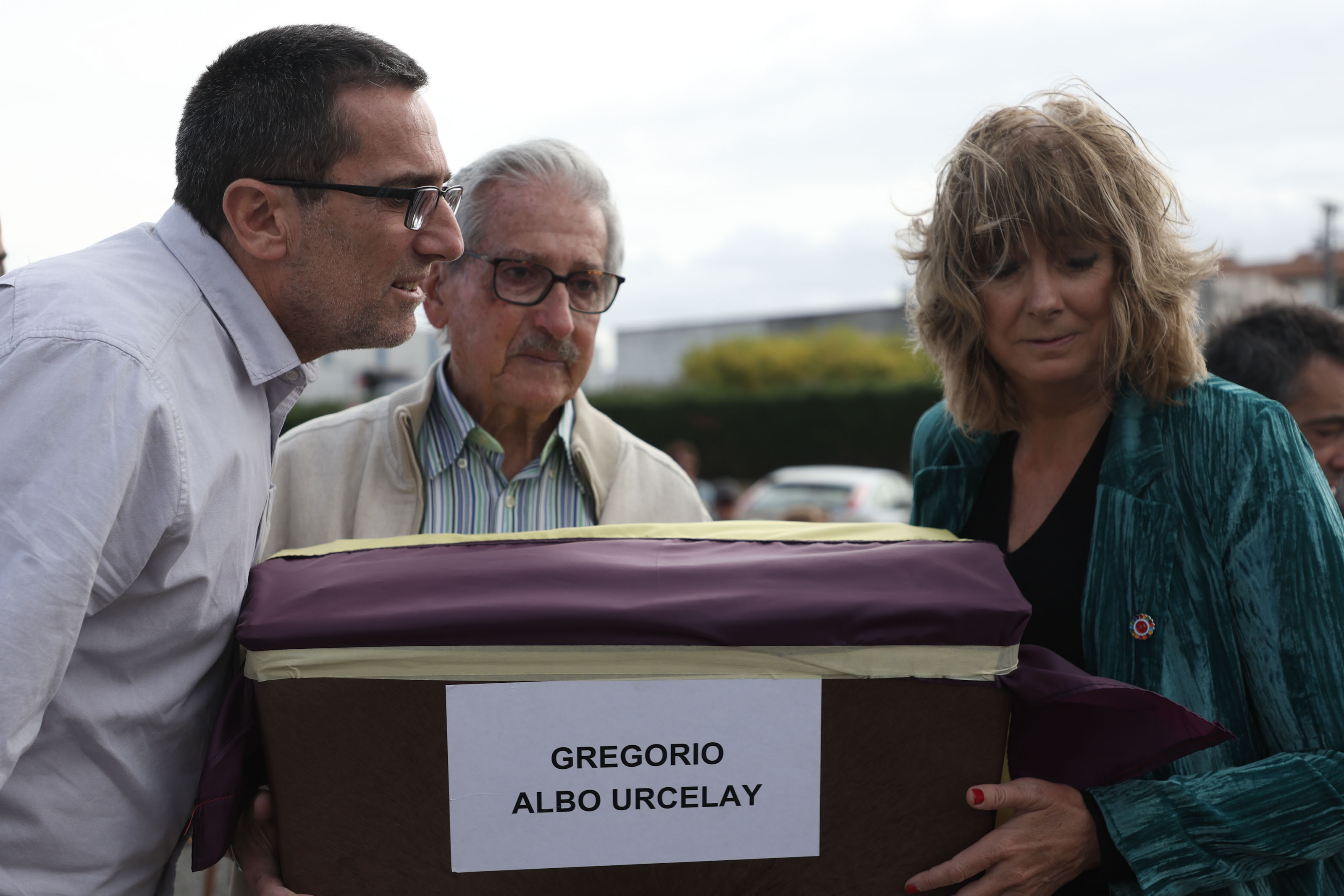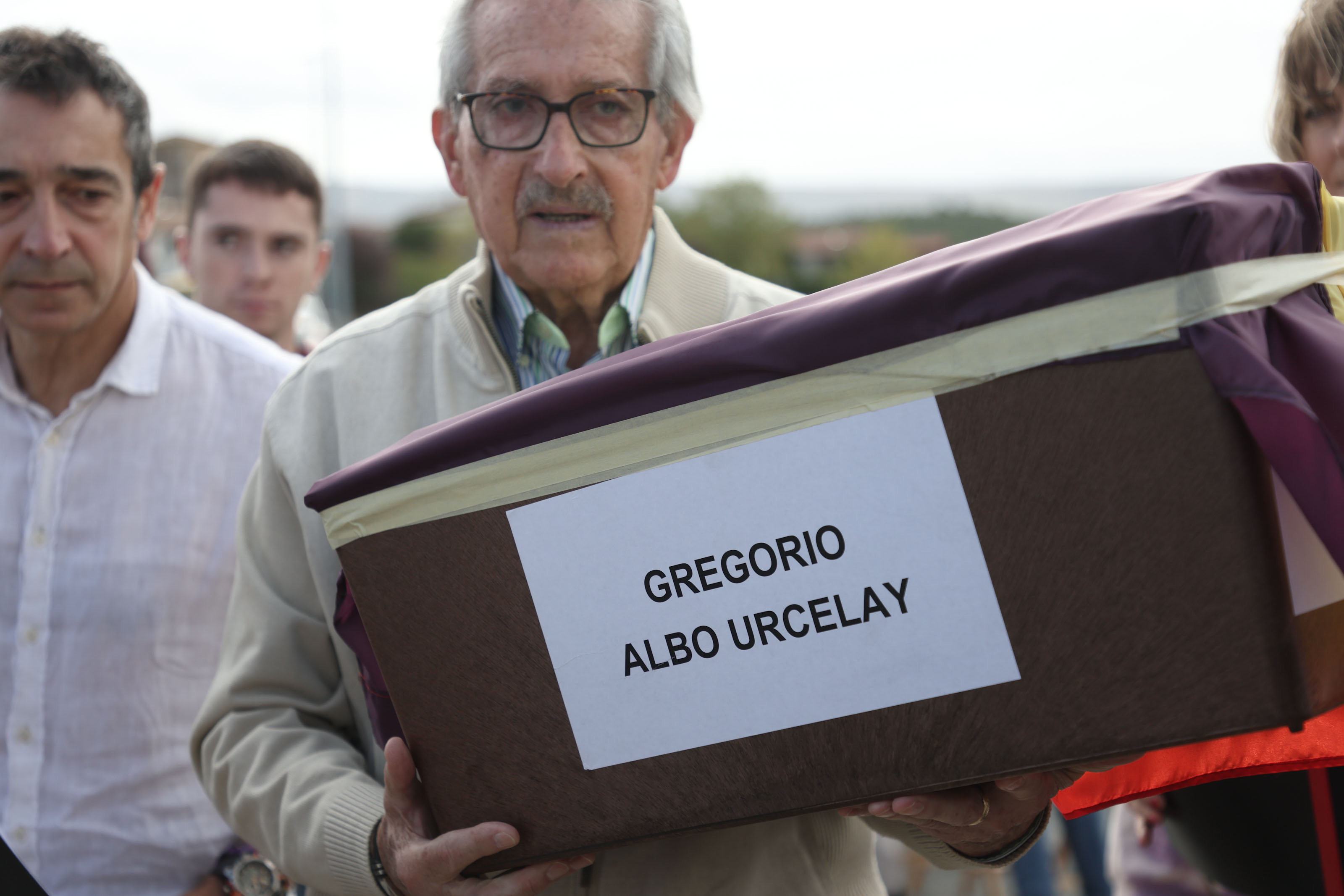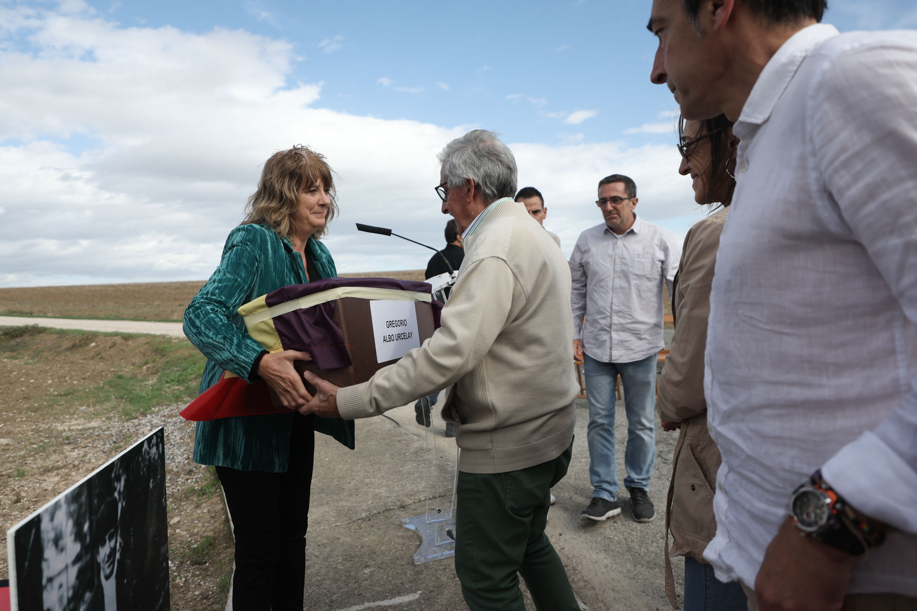 Esta mañana la consejera de Relaciones Ciudadanas, Ana Ollo, ha presidido en Paternáin el acto de entrega de los restos exhumados de Gregorio Albo Urcelay a sus familiares, entre los que se encontraban su hijo Manuel y su nieto, Manu Ibero.