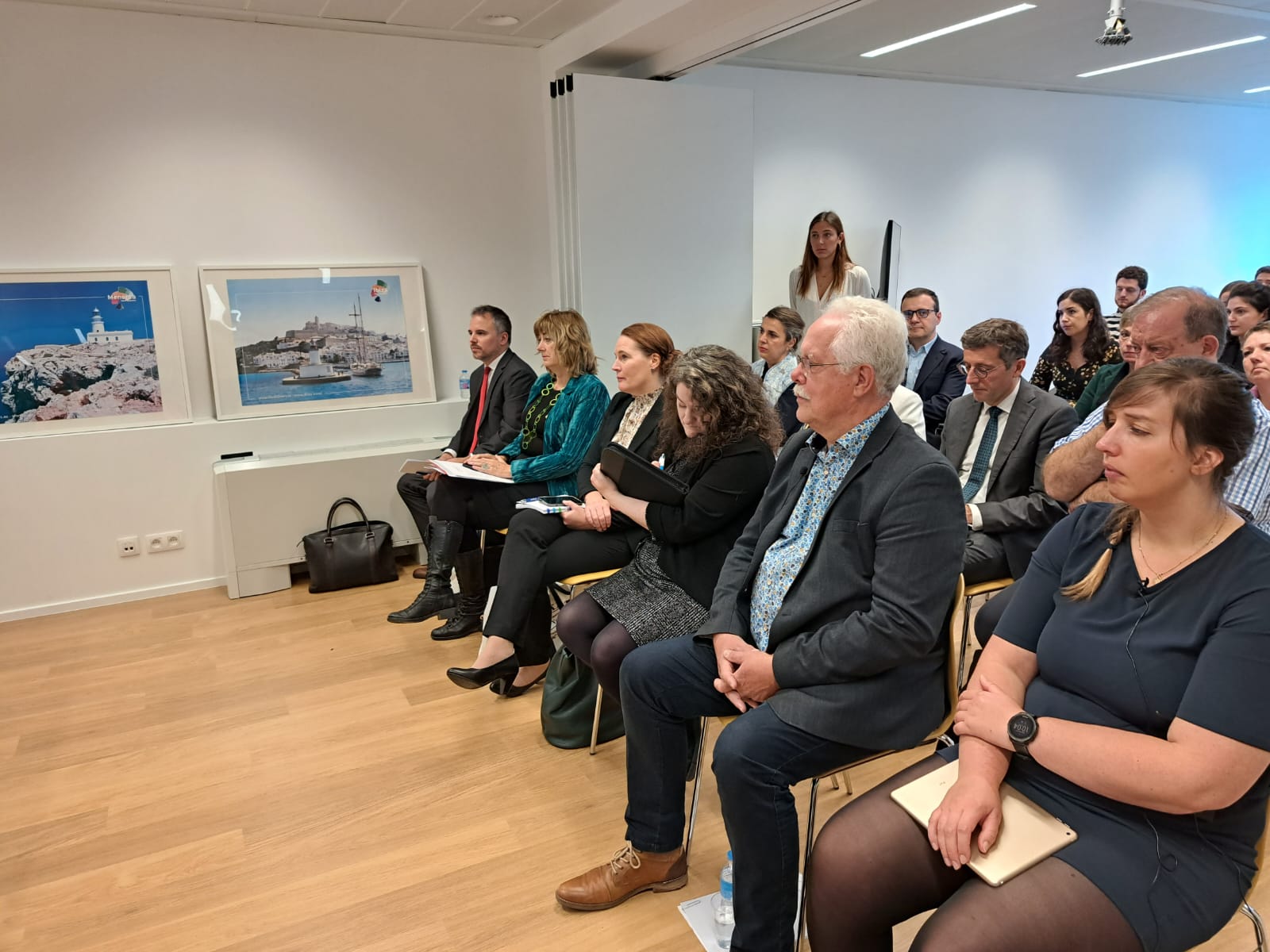 La consejera de Relaciones Ciudadanas, Ana Ollo, y el director gerente de Euskarabidea - Instituto Navarro del Euskera, Mikel Arregi, han asistido a un desayuno de trabajo organizado por la Red para la Promoción de la Diversidad Lingüística, celebrado en la sede que el gobierno de las Islas Baleares tiene en Bruselas.