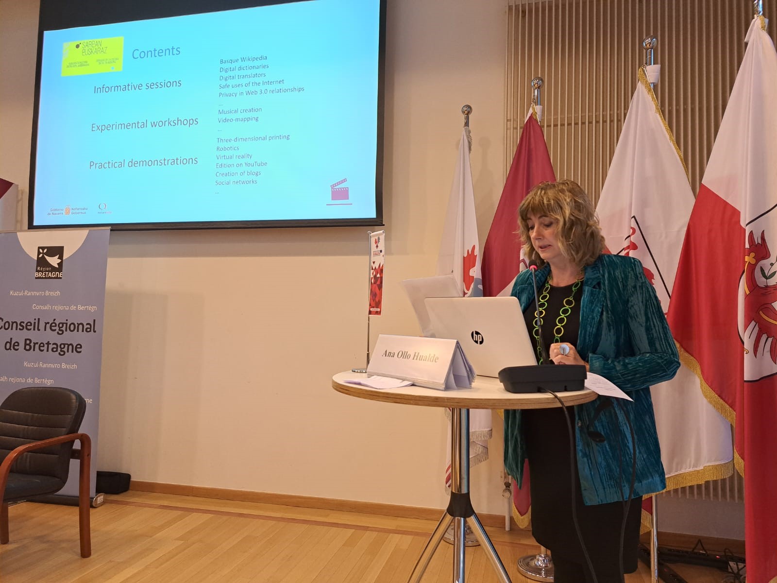 La Consejera Ollo presenta el proyecto “Sarean euskaraz: digital culture on Basque for young people”, iniciativa que tiene como objetivo dar a conocer y promover el uso del euskera en el ámbito de las tecnologías de la información y la comunicación, así como promover la cultura digital en esta lengua, especialmente entre la población juvenil https://www.youtube.com/watch?v=Mg_139bTyeU
