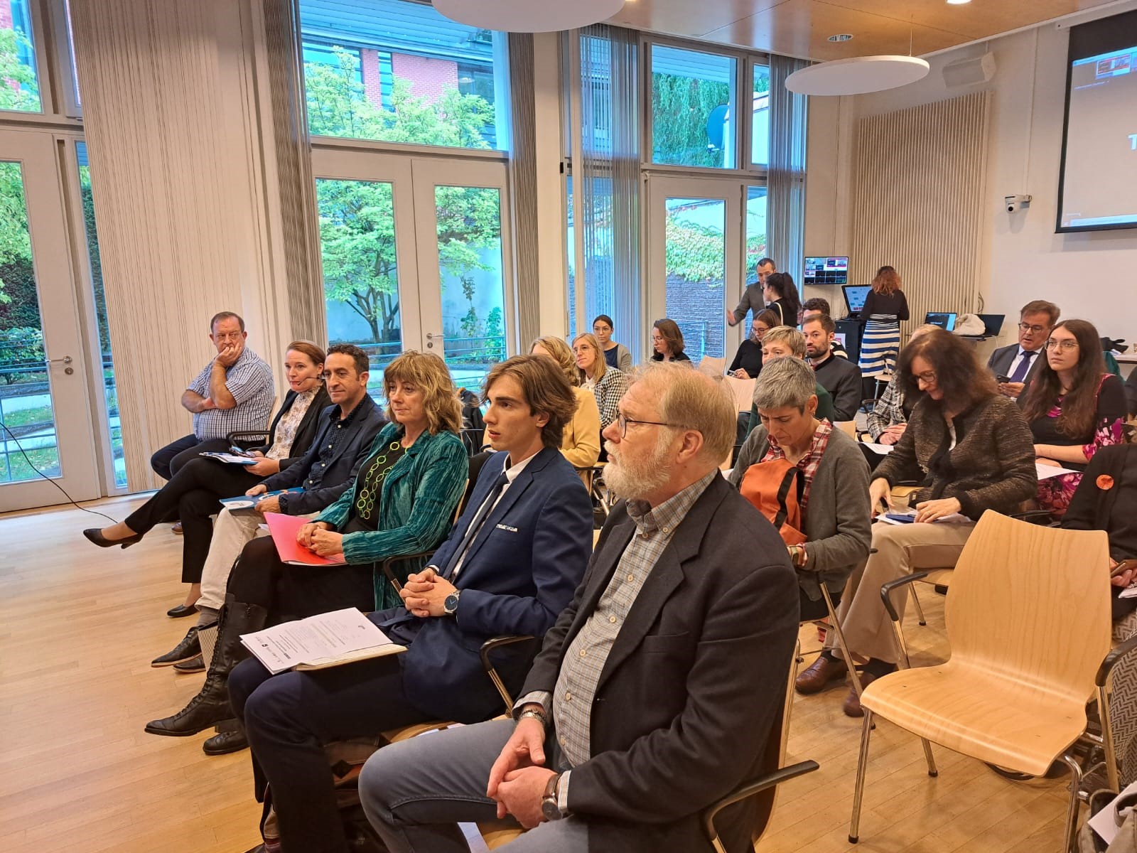 El programa incluye la intervención de Johan Häggman, coordinador en Bruselas de la FUEN. Tras su presentación, se ha organizado un primer panel, con la participación de François Alfonsi del Parlamento Europeo; Philippe Gelin, de la Comisión Europea, y Jarmo Lainio, del Comité de expertos de la Carta Europea de las Lenguas Regionales o Minoritarias, con Anna Jungner-Nordgren de NPLD, de moderadora.