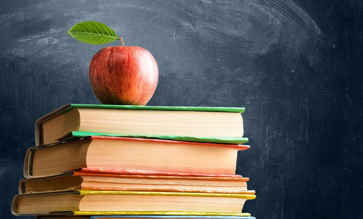 Imagen de una manzana sobre libros.  Descargar imagen Ver galería de imágenes