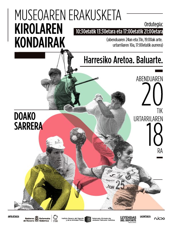 La muestra incorpora además el Txoko del deporte navarro, un espacio dedicado a deportistas de la Comunidad Foral que han protagonizado logros destacados en el ámbito nacional e internacional. Entre los objetos que podrán contemplarse figuran el uniforme de taekwondo de Gabriel Esparza, medalla de plata en los Juegos Olímpicos de Sídney 2000; el maillot amarillo del Tour de Francia de 1995 de Miguel Induráin; la camiseta y flecha de la deportista María Carmen Rubio; y la equipación de la atleta Marta Mendía. Este espacio reconoce la trayectoria y el impacto del deporte navarro y sus protagonistas, incorporando referencias esenciales para la memoria colectiva de la ciudadanía.