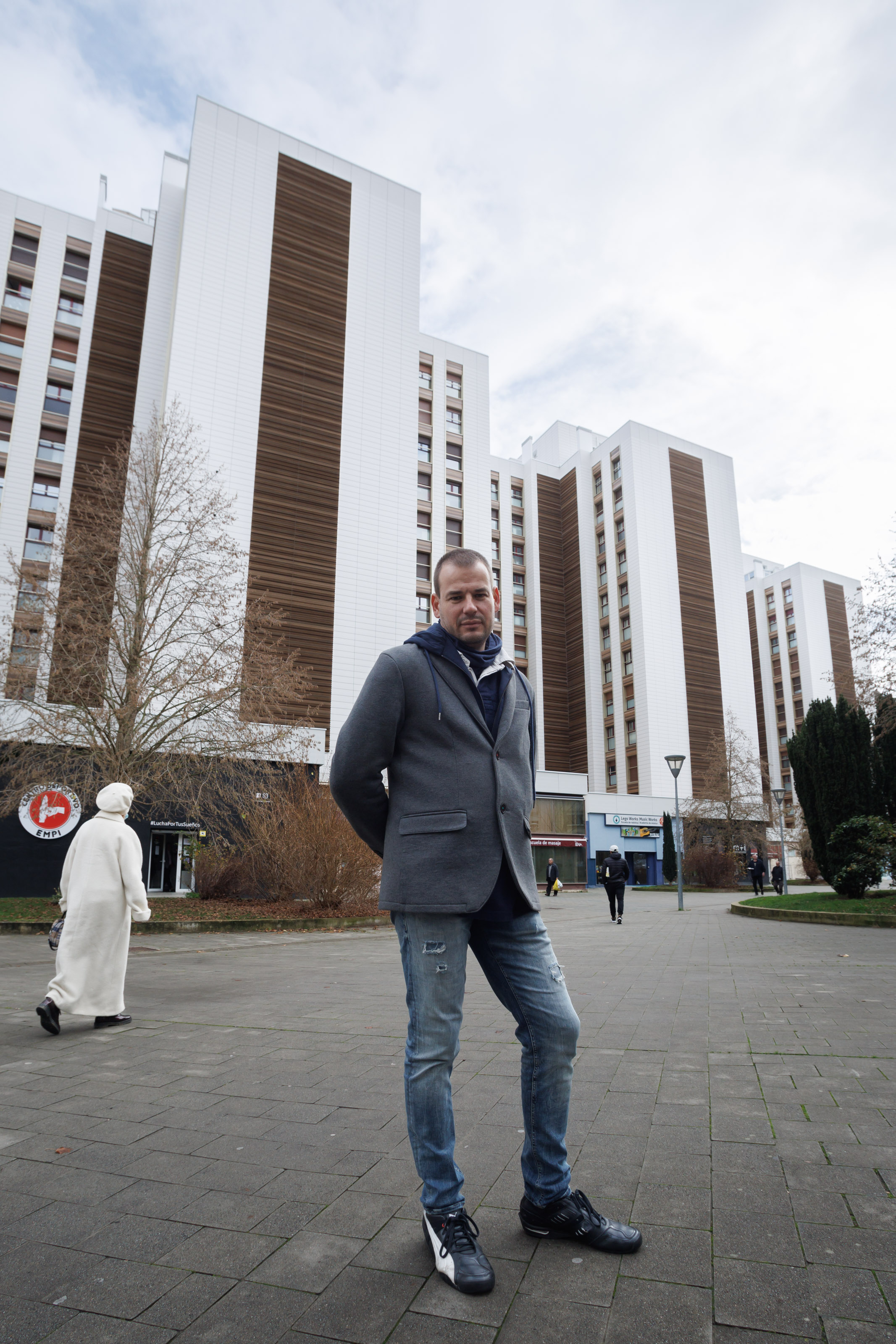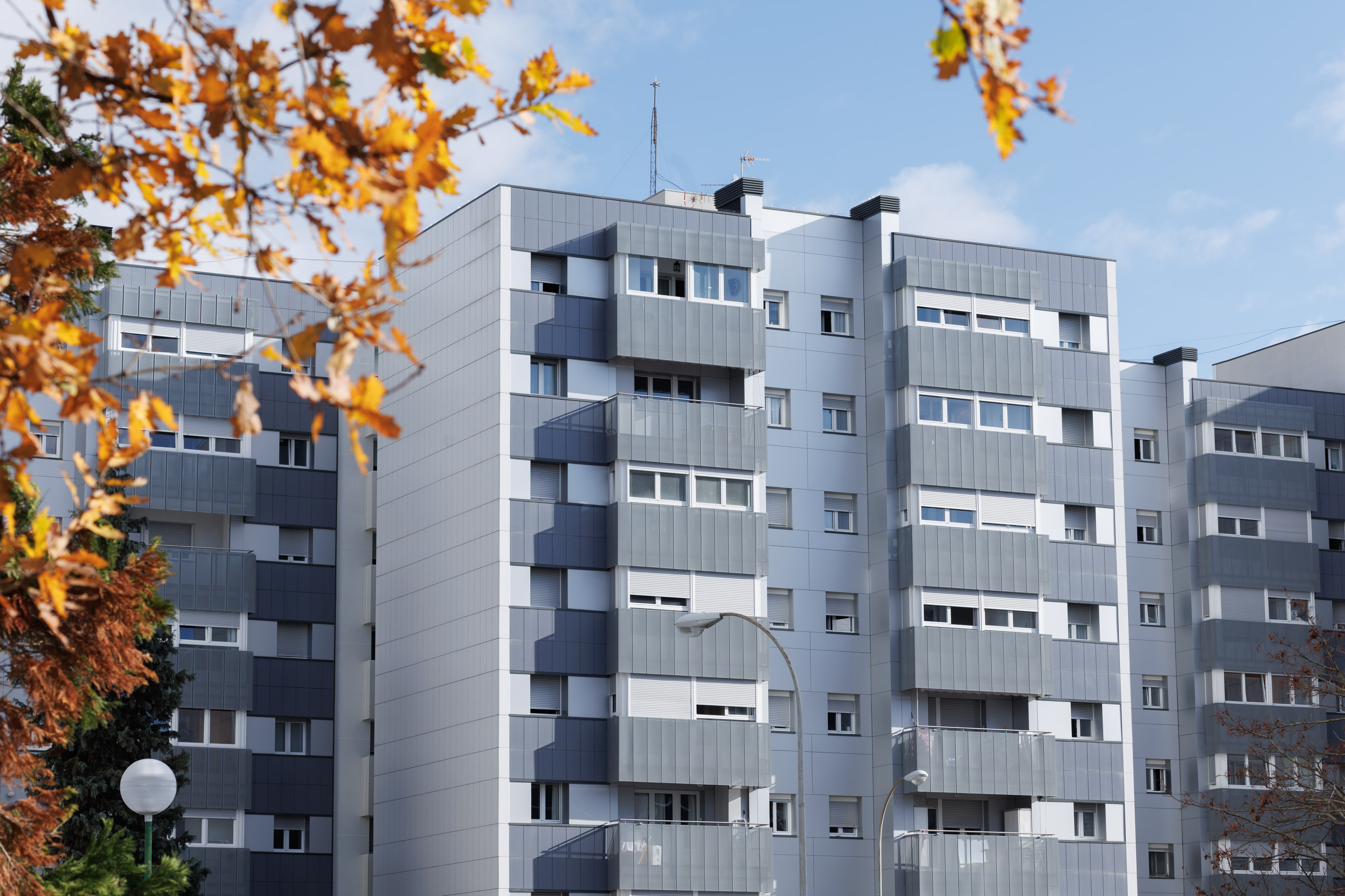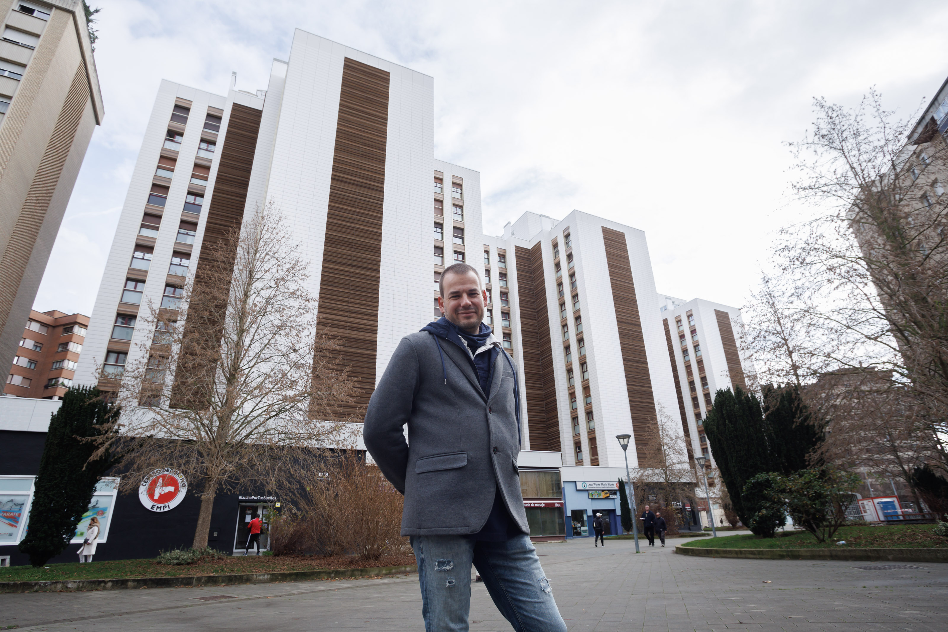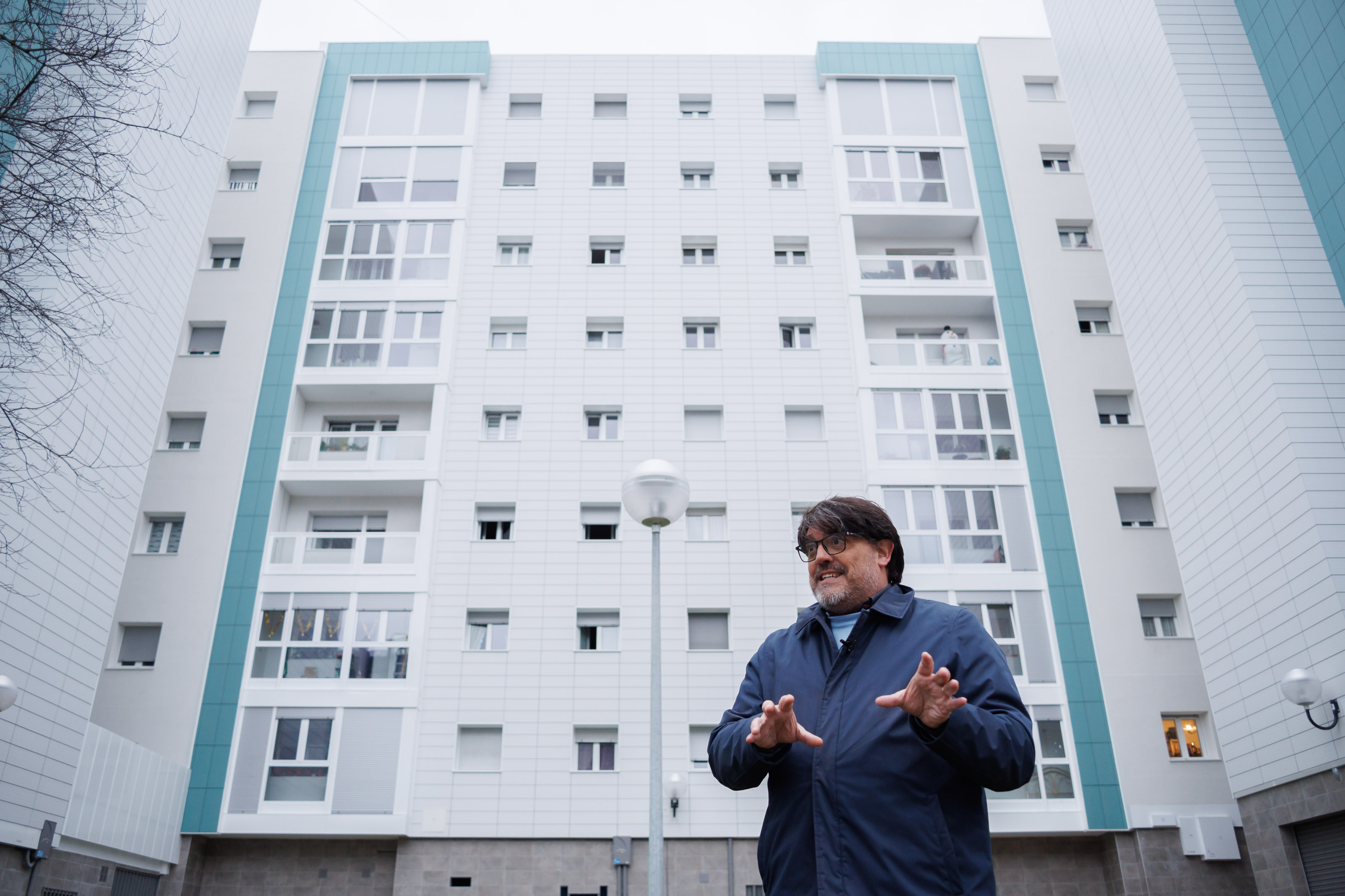 Ignacio Celaya vive en la Agrupación de Orvina 3, en el barrio pamplonés de la Txantrea, una comunidad de 704 viviendas repartidas en 5 manzanas y un total de 23 portales. Estos meses se están finalizando las obras de la fachada de los últimos bloques en renovar su envolvente térmica.