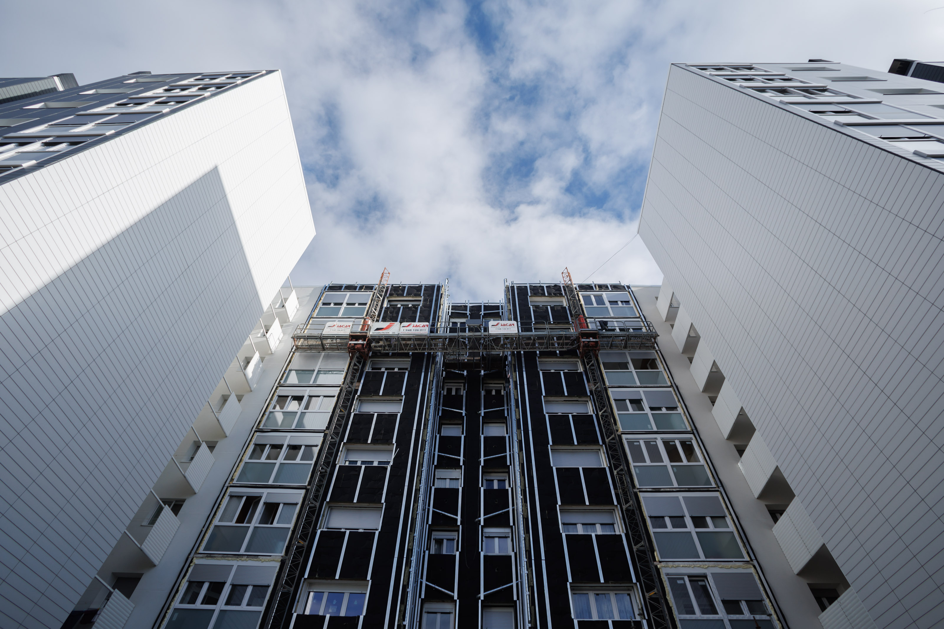 Vecinos y vecinas de los edificios en rehabilitación soportan durante unos meses los inconvenientes de las obras, que plantean la dificultad añadida de compatibilizar la reforma con que el vecindario siga habitando sus viviendas.