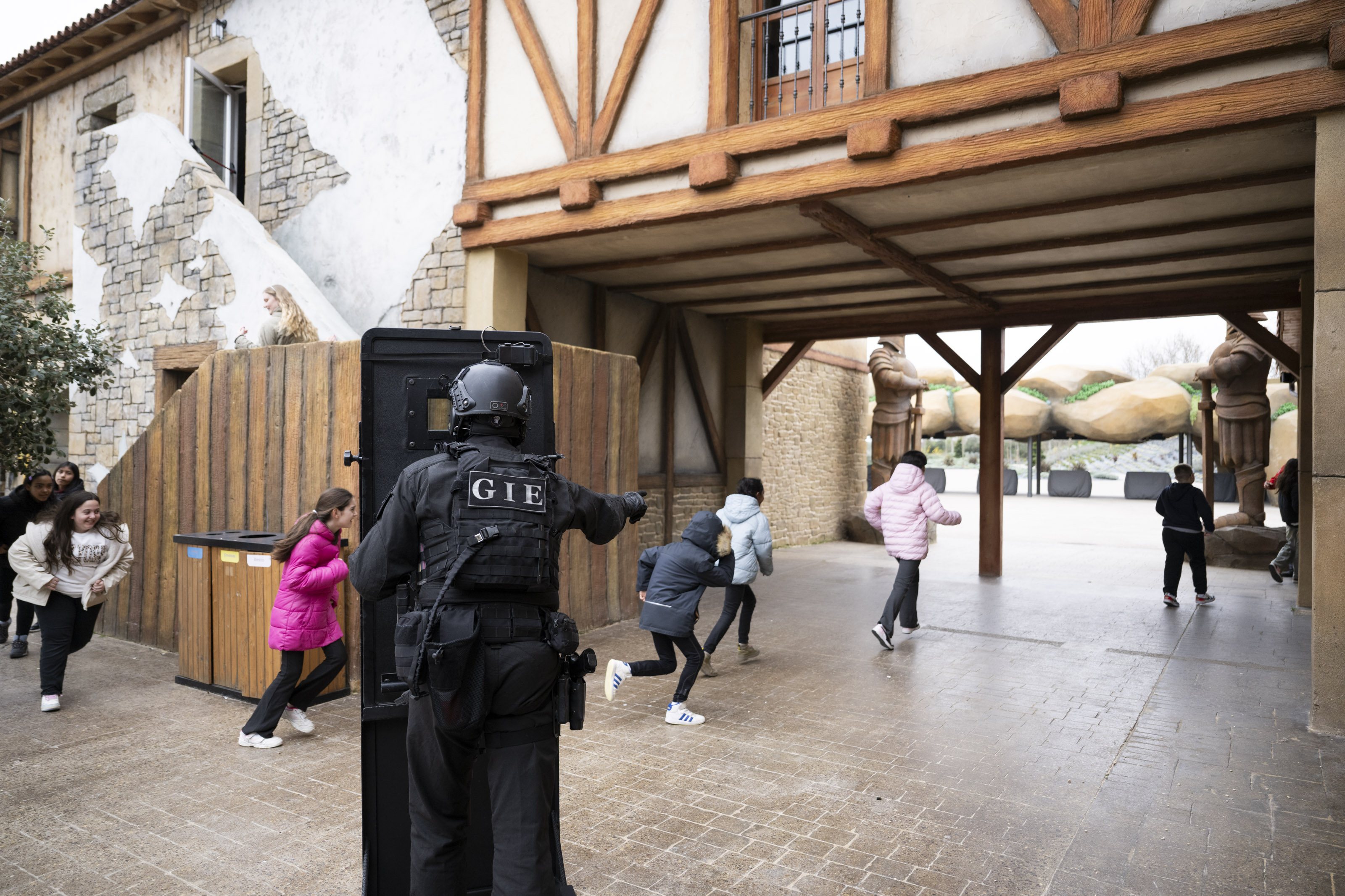 Seguidamente, una persona visitante localiza una mochila sospechosa en una atracción, y al abrirla ve lo que podría ser un artefacto explosivo. El personal del parque informa a la Patrulla de Respuesta Inmediata y a las de Seguridad Ciudadana, que acordonan el lugar y evacúan a las personas que están en las inmediaciones. Asimismo, acude a la zona el Grupo de Guías Caninos, quienes se coordinan con el equipo de drones para realizar la inspección, y para confirmar finalmente la presencia de un artefacto explosivo.
