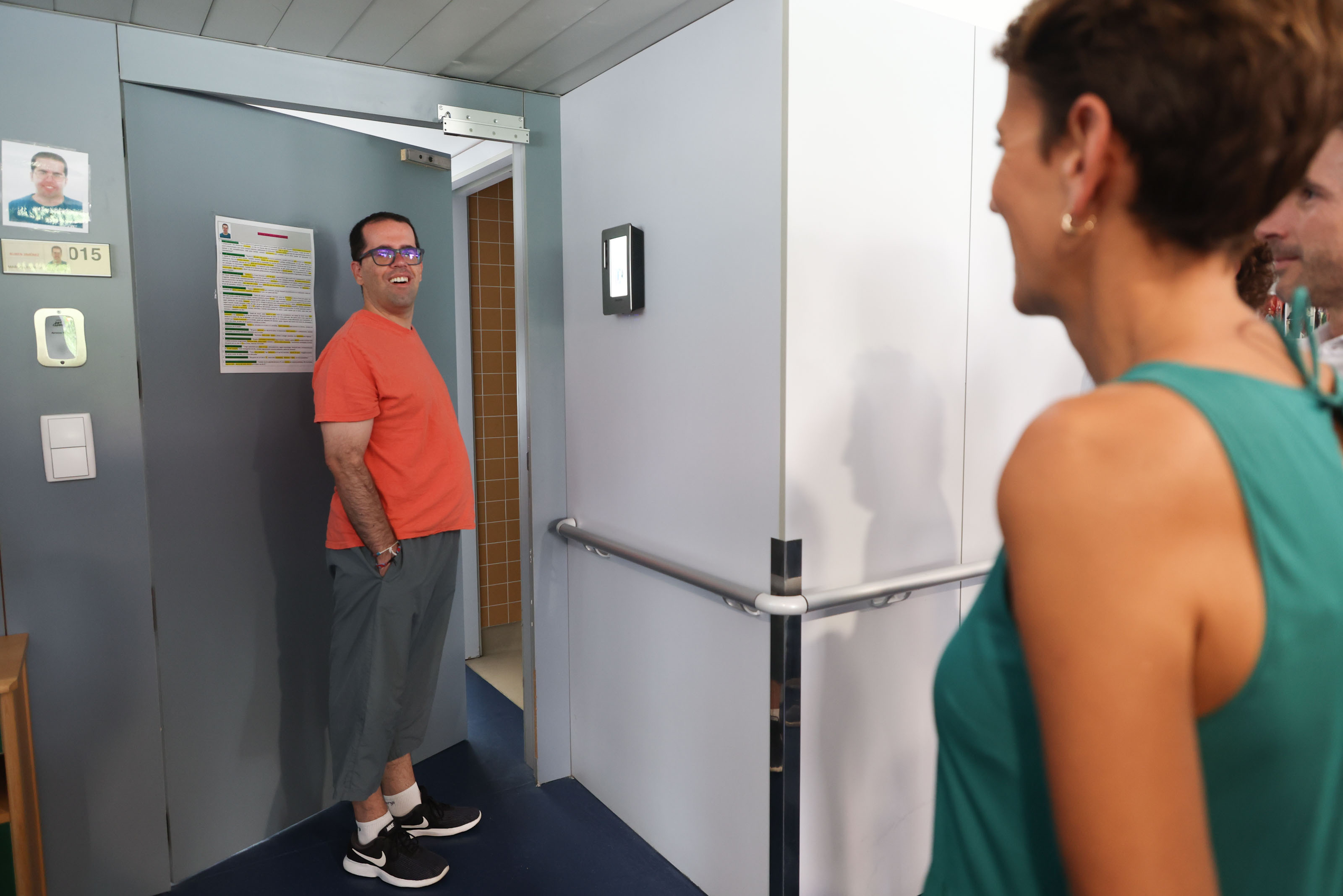 En el centro San José, de propiedad y gestión del Gobierno de Navarra, el acceso a las habitaciones por parte de las personas residentes está controlado por el personal cuidador, de forma que no pueden entrar ni salir si no acuden a abrirles la puerta. Con la incorporación de la biometría o reconocimiento facial en estas dos habitaciones, esta situación ha dado un giro radical. Ahora, son ellos mismos y su personal cuidador quienes pueden activar el acceso –tanto para entrar como para salir- con tan solo acercarse al terminal que está instalado junto a la puerta y mostrar el rostro.