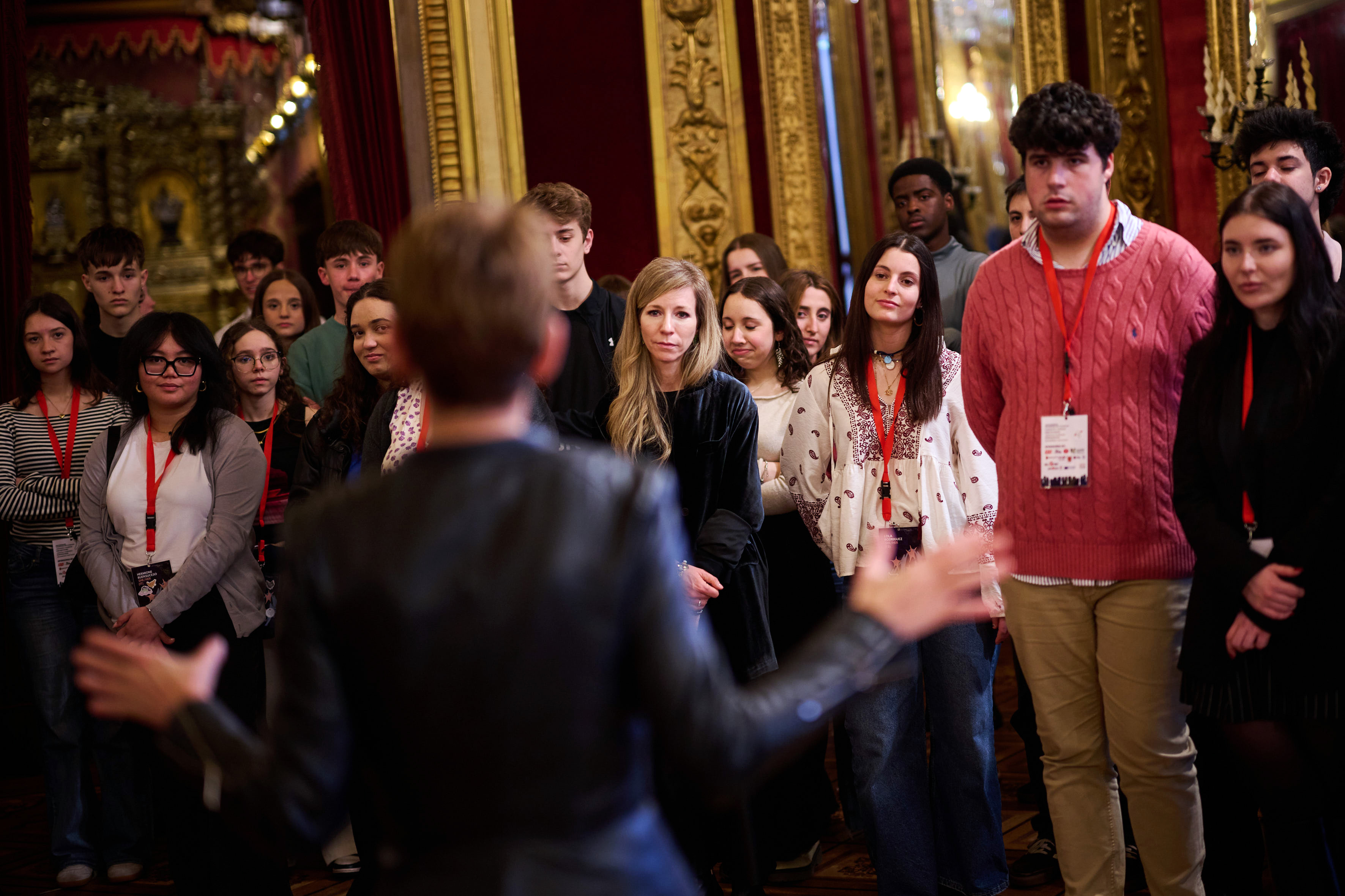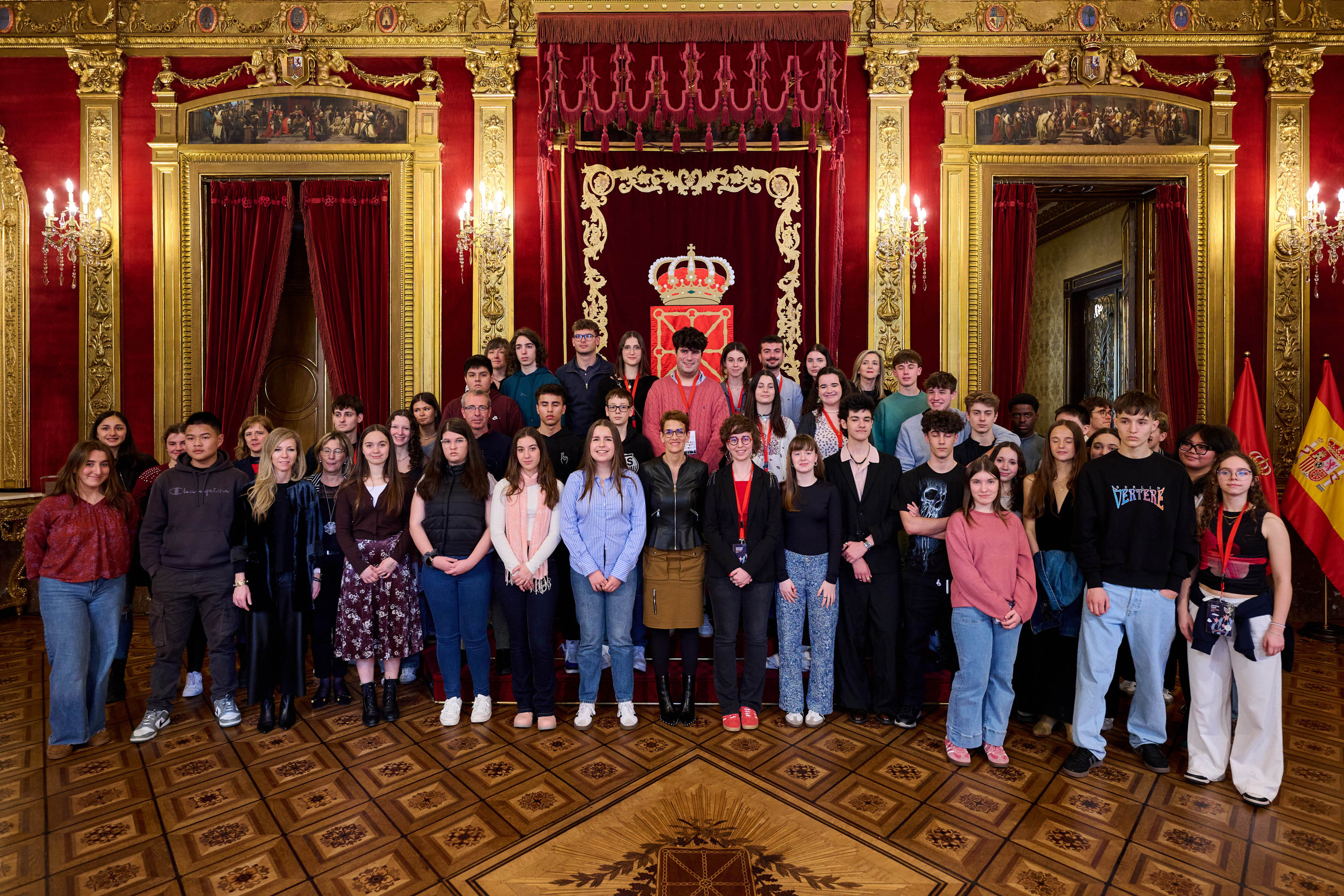 La Presidenta Chivite recibe en el Salón del Trono a medio centenar de estudiantes que participan en el Parlamento Joven Europeo