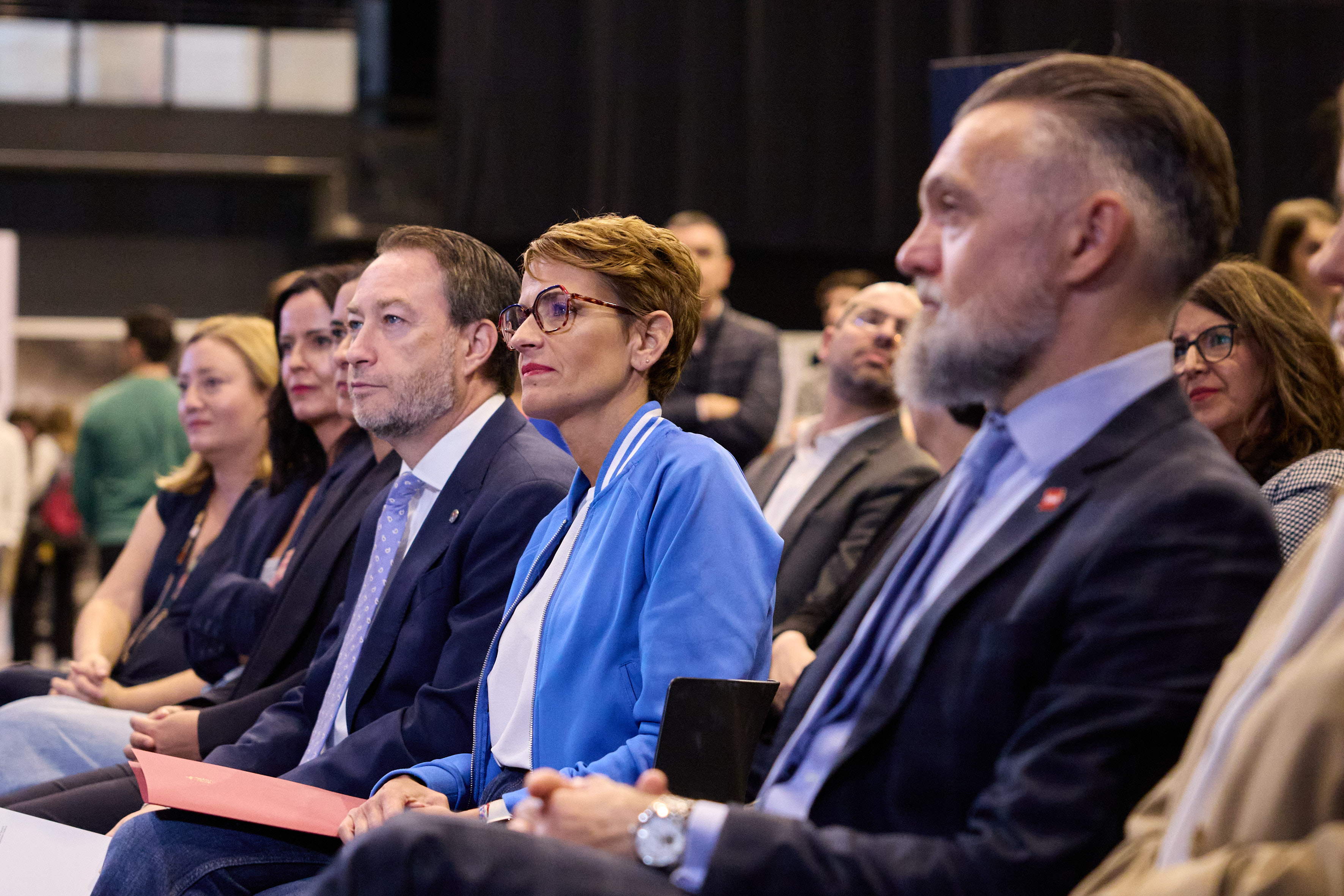Durante el acto, la Presidenta ha estado acompañada por rector de la institución, Ramón Gonzalo, y por la directora gerente de la Fundación Universidad Sociedad de la UPNA, Iosune Pascual. Han participado además las y los representantes de las principales entidades colaboradoras con el evento: Architech, Caja Rural de Navarra, Ingeteam, Sungrow y Timac Agro.