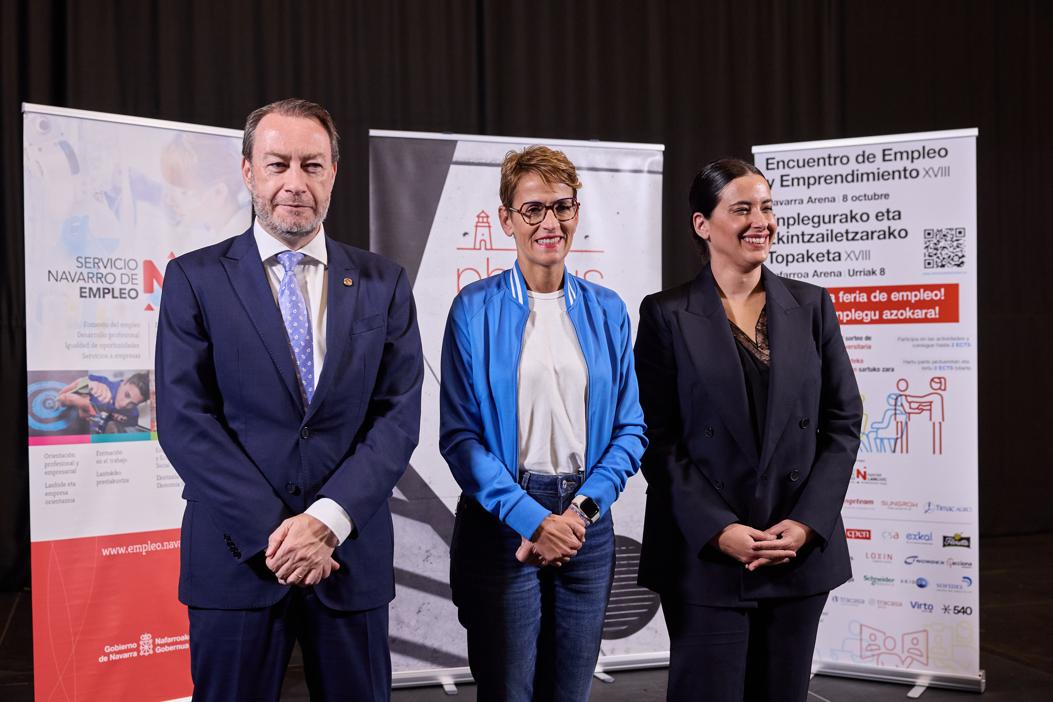 La Presidenta de Navarra, María Chivite Navascués, ha reivindicado las actuales cifras de empleo de la Comunidad como un “récord histórico”, con una media consolidada de en torno a las 315.000 personas trabajando, lo que supone contar “con una de las tasas de paro más bajas del país”. Así lo ha afirmado durante la apertura de la decimoctava edición del Encuentro de Empleo y Emprendimiento organizado por la UPNA, donde ha valorado también positivamente la empleabilidad del alumnado egresado de la institución y ha señalado que se trata de “la universidad con más inserción de toda España según datos del Ministerio de Ciencia, Innovación y Universidades”.