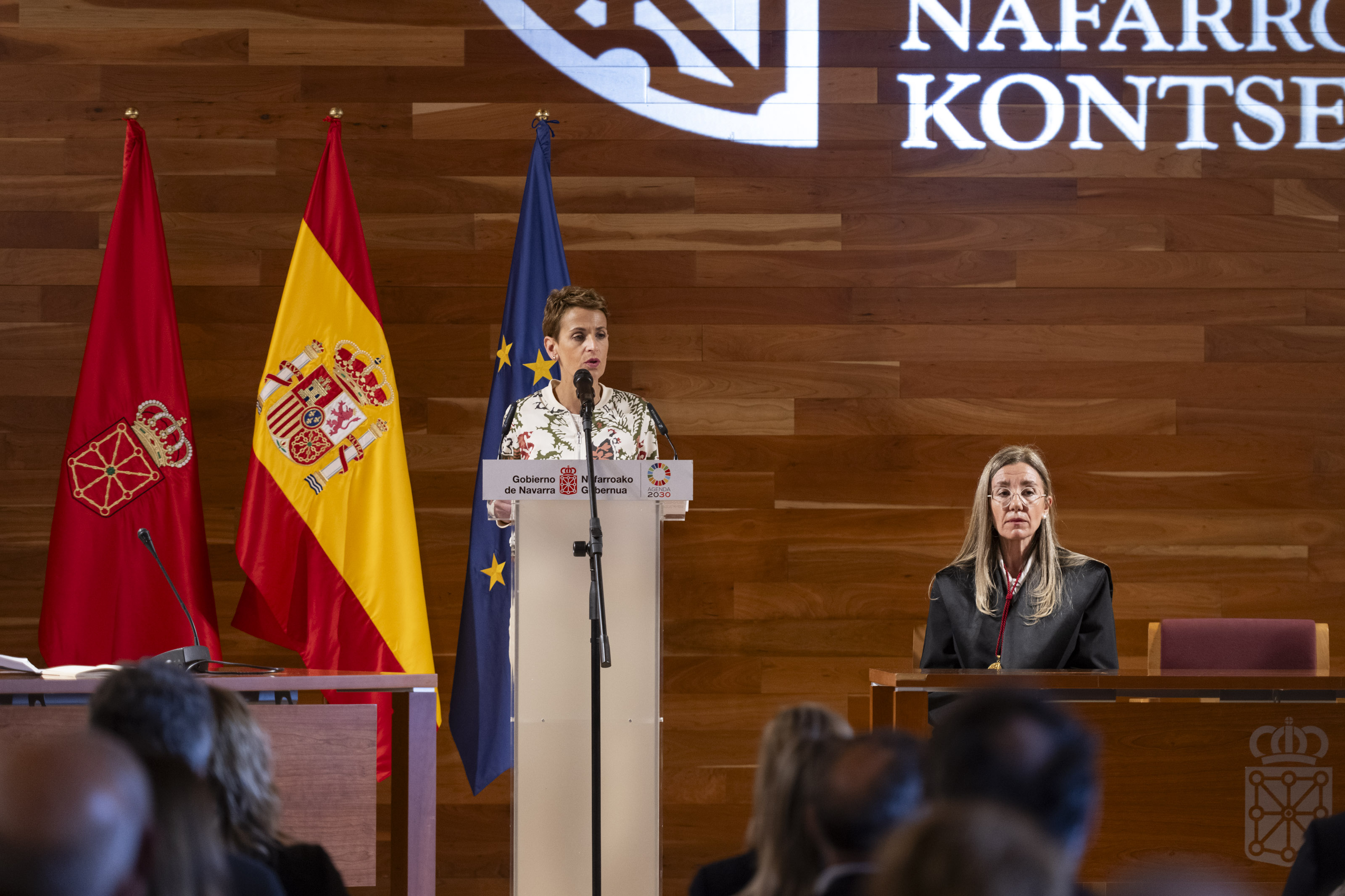Así lo ha indicado la Presidenta Chivite en el acto de toma de posesión de la nueva presidenta del Consejo de Navarra, Ana Clara Villanueva Latorre, a quien ha deseado “un fructífero mandado que será ejercido con la máxima responsabilidad y respeto”. En su intervención, la Presidenta ha recordado que el Consejo de Navarra ha expresado sus conclusiones en 1.233 dictámenes, “una producción jurídica más que notable, para un consejo formado, en la actualidad, por tan solo cinco integrantes y que debe expresar criterio sobre cuestiones de muy diferente alcance”, ha dicho.
