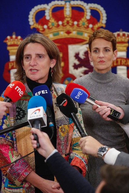 La Presidenta de Navarra, María Chivite Navascués, se ha reunido en Madrid con la vicepresidenta tercera del Gobierno de España, Teresa Ribera, para avanzar en los asuntos prioritarios para Navarra: comienzo de las obras de la segunda fase del Canal de Navarra, mejora de las infraestructuras energéticas y la búsqueda de oportunidades para las comarcas con menor densidad poblacional.