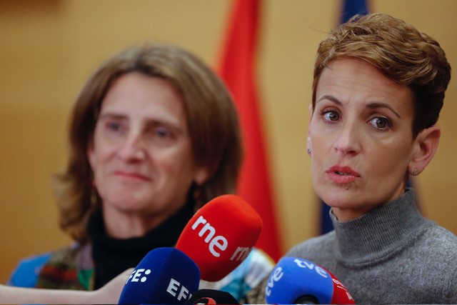 La Presidenta de Navarra, María Chivite Navascués, se ha reunido en Madrid con la vicepresidenta tercera del Gobierno de España, Teresa Ribera, para avanzar en los asuntos prioritarios para Navarra: comienzo de las obras de la segunda fase del Canal de Navarra, mejora de las infraestructuras energéticas y la búsqueda de oportunidades para las comarcas con menor densidad poblacional.